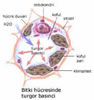 | 1-Bir bitki hücresinin osmosla su alarak şişmesi ve sitoplazmanın çepere basınç yapmasıyla belirlenen hücre içi basınç. Bu basınç hücre içine daha fazla su girmesini önler. 2-Bir bitki hücresinin osmozla su alıp şişmesi ve hücre çeperinin gergin hale gelmesi. Şişme,sıkışma,bitki iç basıncı. |