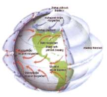 gen-leşip yükselen hava kutuplara doğru akıp arada dibe dalarken,
