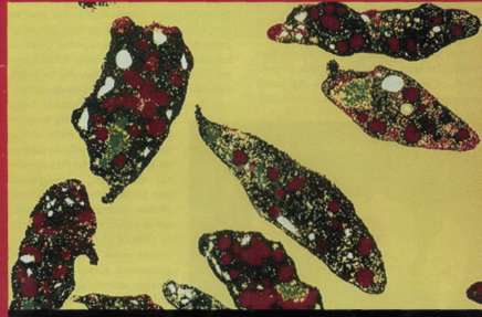 hücreler. Görüntüde düzensiz biçimde izlenen pulcukların üzerinde, serotonin ve histamin taşıyan kovuklar