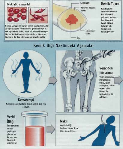tam uyumlu bir insanın kök hücreleri verilerek kemik iliğinde yeniden kan yapımını sağlamak mümkündür. Buna allo-geneik kök hücre nakli denilir. Bu tür kan yapan kök hücre nakilleri -bu kök hücreler aynı zamanda bağışıklık sisteminin de kök hücreleri olduğundan- bir yerde yalnızca kan yapan hücrelerin değil, aynı zamanda bağışıklık sisteminin hücrelerinin (lenfositlerin) de nakledil-mesidir. Bu nakil işlemi başarıyla sonla-nırsa, hasta (alıcı) tüm dokularıyla kendisiyken kan dokusu ve bağışıklık sistemi verici kaynaklı olacaktır. Buna Chi-mera (kimera) denilir. Chimera grek mitolojisinde başı aslan, gövdesi keçi, kuyruğu ejderha kuyruğu olan canavarın adıdır.
