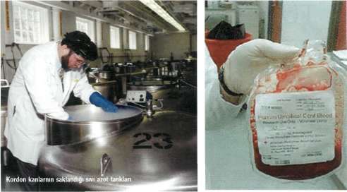 nı deniyor. Bebek, bu kordonla annesiyle arasındaki besin ve oksijen alışverişini sağlayan plasentaya bağlı. Yakın bir zamana kadar plasenta, göbek kordonu ve içindeki bu değerli kan atılmaktaydı. Ancak, hematopoetik (kan yapan) kök hücrelerden zengin olduğu anlaşıldıktan sonra, özel yöntemlerle toplanıp saklanmaya başlandı. Bu kök hücreler, tüm kemik iliği hücreleri harap olmuş bir kişinin ilik görevini yeniden normale döndürebi-lecek kapasitede. Bu yüzden uygun koşullarda pıhtılaşmadan, hızla toplanan ve hücre zedelenmesine yol açmadan, yine uygun koşullarda dondurulan bu hücreler çeşitli nedenlerle kemik iliği çalışmayan ya da hasta iliğe sahip olan kişilere tekrar sağlıklarına kavuşma şansı veriyor. Bu kanı toplama işlemini genelde kadın doğum uzmanları ya da bu konuda deneyimli ebeler gerçekleştiriyor. Ancak, doğum