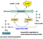 Laktik asit fermantasyonu : Omurgalıların çizgili kas hücrelerinde ve bazı maya hücrelerinde görülen fermantasyon şeklidir.Oksijen yokluğunda bazı bakteri ve memeli hücrelerinde görülen, glikoz sonucu oluşan piruvatın laktik aside dönüştürülmesi, oksijen yetersizliğinde bazı bakteri ve hayvan hücrelerinde görülen bir fermantasyon biçimidir.