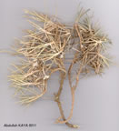 | A. microcephalum Boiss., Diagn. ser. 1(1): 43 (1843). Shrub, 15-30 cm, papillose-pubescent, stems numerous, erect. Leaves fasciculate, finely pubescent, spreading, needle-like, 10-15 x 0.5-1 mm, ending in glabrous yellowish spines. Internodes (10-)15-20 mm, mostly longer than leaves. Clusters of flowers terminal and axillary. Bracts leaf-like, linear-lanceolate, erect, spiny, membranous-margined at base, 3-7 mm, shorter than or as long as the flowers; flower-heads together with bracts 8-13 mm in diam. Calyx tubular-turbinate, 3.5-5 mm, 5-costate, shortly pubescent, teeth short, ovate to broad ovate, straight, adpressed, prickly, 1-1.5 mm, with broad membranous margins. Petals white, oblanceolate to obcordate, retuse, 4-6 mm. Capsule obovate to globose. Seeds ± smooth. Fl. 7-8. Mountain steppe, 1800-2000 m. Type: Iran, in rupestribus montis Elbrus Persiae borealis prope Derbend, 30 vi 1843, Kotschy 416 (holo. G!). B9 Van: 2 km N of Micinger suyu river, on road to Şatak, 1900 m, D. 23169! C1O Van/Hakkari: Başkale to Çölemerik, 1800 m, Birand & Karamanoğlu 415! Transcaucasia, Iran. Ir.-Tur. element. Allied to A. mucronatum and A. verticillatum. |