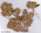 | A. bombycina Boiss., Fl. Or. 4:803 (1879). Syn: A. argyrea Stapf in Denkschr. Akad. Wiss. Wien, Math.-Nat. Kl. 50(l):103 (1885)! Fleecy perennial herb with slender woody root. Whole plant (except corolla) densely silvery tomentose with long soft hairs that completely obscure the leaf surface. Stems prostrate or procumbent, simple, 3-15 cm. Basal leaves (when present) obovate to obovate-oblong, crenate-dentate. Inflorescence dense, (at least above), 3-15 cm. Verticillasters 2-flowered. Cauline and lower floral leaves cuneate to oblong-cuneate, 3-fid to 1/4 or less into broad rounded lobes. Corolla yellow, 12-16 mm, shape as in A. chamaepitys. Nutlets transversely rugulose. Fl. 4-5(-6). Limestone rocks and rocky slopes, 50-1350 m. Lectotype designated here: [Turkey C3 Antalya] in rupestribus promont-orium Alaya (Alanya) Pamphyliae, v 1845, Heldreich (G!). S., S.W. & adjacent C. Anatolia. C2 Muğla: Sandras Da., 1350 m, N. & E. Tuzlaci (ISTE 40692)! Acropolis, Bazirğan Y., 26 iv 1882, Luschan (type of A. argyrea)! Antalya: Kalkan to Sütleğen, pass 13 km E. of Kalkan, 980 m, Hub.-Mor. 16745! C3 Konya: N. of Gencek (Akseki to Beyşehir), Runem. & Wendelbo 406! Antalya: Alanya promontory, 50-200 m, D. 25874! C4 Antalya: E. side of Alanya, 100 m, Hub.-Mor. 10575! Konya: d. Bozkir, Kiz-ildaz alti to Kayalik, 1150 m, Çetik 211! Endemic. E. Medit. element. The material cited above from Konya province is atypical in its narrower, cuneate-oblong shorter-lobed leaves, thus approaching subsp. mesogitana. A. bombycina, raised from seed from the type locality, retained its characters when cultivated in England. |
