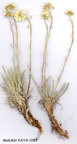| A. artvinense Busch in Fl. Cauc. Crit. 3(4): 566 (1909). Iα: Anal. Acad. R.P.R. (Sect. Geol. Geog. Biol.) ser. A, 1(3): t. 4 (1949). Perennial with erect, slender and tortuous stems. Leaves linear-oblanceolate, acute, 15-25 x 1-2 mm, indumentum silvery. Cauline leaves increasing in size upwards. Petals pale lemon yellow, entire, obovate, 4-5.5 x 2-3(-3.5) mm. Fruits2-3.5 mm long and wide, orbicular, deeply emarginate, indumentum ± sparse, of strongly punctate hairs. Styles 1.5-2 mm. Seeds wingless or narrowly winged. Fl. 5-6. Igneous rocky slopes, 700-1200 m. Syntypes: [Turkey A8 Çoruh] Artvin, prope Ardanuç, 29 vi 1904, Mikhailouski 9; ibid., 15 v 1907, Woronow 536; nr. Artvin, 2 vi 1907, Woronow 535; Berta su, Berta, v 1907, Woronow 534. lMainly Lazistan. A8 Çoruh: 20 km S of Artvin, 730 m, Hub.-Mor. 16230! Erzurum: d. Ispir, 8 km NW of Ispir, 1200 m, Hub.-Mor. 16229! Endemic; allied to A. armenum. Originally placed in Sect. Odontarrhena by Nyârâdy. However, as there are 2 ovules in each loculus (frequently only one developing into a seed) it may be referred to Sect. Alyssum. |