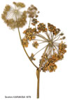 | A. sylvestris L., Sp. PI. 251 (1753). Figure 6, p. 275. Erect perennial; stems 70-200 cm, striate. Basal leaves 2-pinnate to ternate, glabrous, ultimate segments 2.5-9 cm, ovate-elliptic, coarsely dentate. Umbels 15-90-rayed, rays papillose-hispid; umbellules c. 35-fiowered; bracts numerous, linear to lanceolate, simple to deeply dissected; bracteoles numerous, linear. Flowers pinkish-white; fruit 5-6x3.5-5 mm, elliptic to orbicular, glabrous; margins c. 1.5 mm wide. Fl. 7-8. By streams, damp grassy places, etc., 50-2200 m. 1. Basal leaves with 3-6(-9) cm, lanceolate to ovate, usually serrate ultimate segments: fruit wing 1-1.5 mm wide var. sylvestris 1. Basal leaves with 6-9 cm. ovate, crenate ultimate segments; fruit wing 0.3-0.8 mm wide var. stenoprera var. sylvestris. Syn: A. elata Velen. in Sitz. Bohm. Ges. Wiss. Math.-Nat. CI. 44 (1890); A. brachyradia Freyn in Verh. Zool.-Bot. Ges. Wien 38:607 (1888); A. illyrica Maly in Glasn. Muz. Bosni Herceg. 31:65 (1919). Ic: Bonnier, Fl. Comp. Fr., Suisse & Belg. 4: t. 215 (1920); Ross-Craig, Draw. Brit. PI. 13: t. 16 (1959). Described from Europe (Hb. Cliff.!). N. Turkey, S. Anatolia. A2(E) Istanbul: Büyükdere to Belgrad Ormani, 28 ix 1887, Azn.! A2(A) Bursa: Mt. Olympus (Ulu Da.), viii 1912, Hb. Robert Coll.! A3 Bolu: below Abant G., 4 viii 1941, B. Post! A4 Zonguldak: Çimşir Dere, above Yenice, 780 m, D. 37812! A5 Sinop: Çangal Da., above Ayancık, 1100 m, D. 38205! A7 Trabzon: Hamsiköy, T. Baytop 14336! A8 Rize: Pazar to Çayeli, 50 m, D. 47719! C6 Hatay: above Yeşilkent, 305 m, Darrah 520! Maraş: Karkan, at base of Akar (Ahir) Da., Hb. Post. Europe, S. Russia, Siberia, W. Caucasus, Georgia. Euro-Sib, element, |