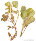 | A. hypogaea L., Sp. P1. 741 (1753). 1c: Villax, Cult. P1. Fourr. Médit. Occid. f. 134 (1963); Pflanzenfam. 3, 3:325 (1894).' Annual to c. 50 cm. Leaflets 25-60 mm, elliptic to obovate. glabrous; stipules c. 40 mm, free portion subulate. Pedicels when in flower c. 1 cm, later elongating considerably, burying the fruit in the ground. Corolla c. 5 mm. Legume 2-4 cm, glabrous. Cultivated for the edible seeds (Peanut, Groundnut). In Turkey known as ' Yerfistiği'. Grown as a crop in S. Anatolia, mainly in Içel, Adana, Antalya and Hatay. Native in Tropical S. America. |