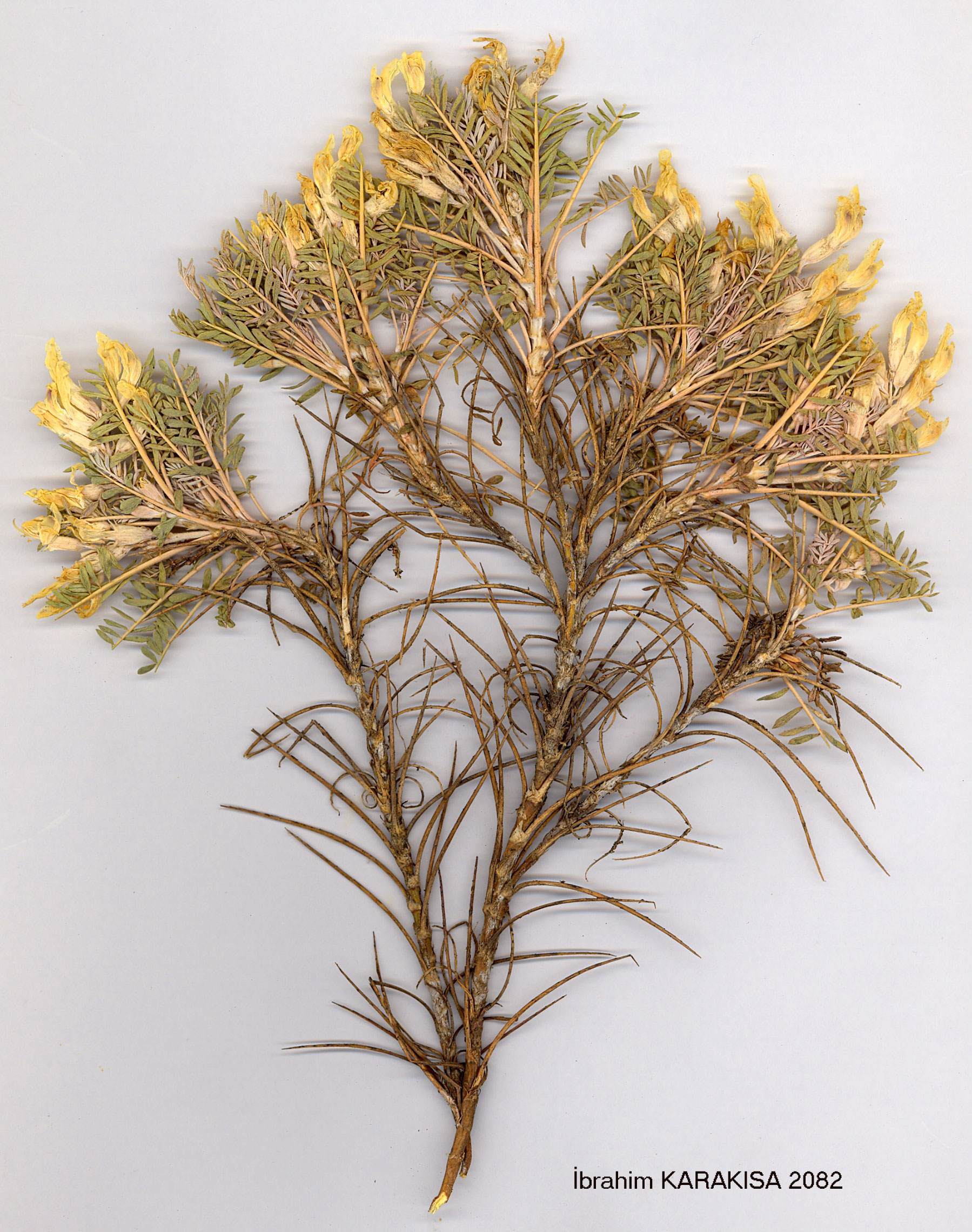 | A. angustifolius Lam., Encycl. 1:321 (1783). Map 52, p. 269. Dwarf, cushion-forming shrub. Leaves 2-6 cm, paripinnate; rachis spiny, leaflets 3-7 mm, elliptic to obovate, obtuse, sometimes mucronate. both surfaces bifurcate-sericeous or glabrescent, (5-)7-12-paired; stipules 5-8 mm, lanceolate, white-hairy, joined to more than half-way. Peduncles shorter or longer than leaves. Flowers in 3-14-flowered racemes. Bracts 2-4 mm, lanceolate. Bracteoles-1-2 mm, lanceolate. Calyx 6-10 mm, tubular, shortly ± adpressed black and white bifurcate-hairy; teeth 1-5 mm. Corolla pinkish-purple, yellow or whitish; standard 15-18 mm. Legume 8-10(-12) x 2-3 mm, oblong, densely ± adpressed white-hairy (sometimes sparsely hairy with a few black hairs); beak c. 1 mm, straight. 1. Peduncles shorter than leaves 2. Calyx teeth half as long as tube or less subsp. angustifolius 3. Corolla whitish or yellow, sometimes with a purple keel var. angustifolius 3. Corolla completely pinkish-purple var. violaceus 2. Calyx teeth ± equal to tube subsp. longidens 1. Peduncles equal to or exceeding leaves subsp. pungens subsp. angustifolius. var. angustifolius. Syn. A. echinoides L'Hèrit., Stirp. Nov. 170 (1785); A. retusus Willd., Mem. Acad. Berol. 24 (1794); A. olympicus Pall., Astrag. 4 (1802); A. leucophyllus Willd., Sp. PL 3:1331 (1802); A. erinaceus Presi, Bot. Bemerk., 57 (1855) non alior; A. angustifolius var. genuinus Boiss., Fl. Or. 2:489 (1872); A. angustifolius subsp. eu-angustifolius Hayek, Prod. Fl. Balc. 1:790 (1926). Fl. 4-8. Steppe, 800-2900 m. Described from 'Armenia'. N.W., W., S. & Inner Anatolia, Islands. A2 Bursa: Ulu Da., 2400 m, Bornm. 1886:3304! A3 Ankara: 10 km W of Beypazari, 1250 m, Kiihne 250! A4 Ankara: 26 km from Kizilcahaman to Gerede, 1340 m, Hub.-Mor. 14522! A5 Çorum: 4 km from Çorum to Merzifon, 800 m, Coode & Jones 1842! A6 Tokat: Merkez, 1100 m, Bozakman 2461! Bl Manisa: Manisa Da., Bal. 213! B2 Kütahya: Emet to Gediz, 1150 m, D. 36602! B3 Isparta: Barla Da., 2000 m, Cheese & Watson 2048! B4 Ankara: 40 km S E of Ankara, 1200 m, Zohary & Plitmann 1661-25! B5 Niğde: Kasan Da., above Taşpinar, 1800 m, D. 18933! B6 Sivas: Felhan Da. between Sivas & Malatya, 1620 m, Birand&Karamanoğlu 117! C3 Konya: 27 km from Beyşehir to Akseki, 1200 m, Demiriz 4502! C5 Niğde: Ala Da., Narpiz gorge, 2500-2900 m, Wood & Gibson 217! C6 Adana: ½ km below Nurdaği Geçidi, 1100 m. Cheese & Watson 1886! Is: Lesvos, Rech. 5543! Khios, Platt 580! Samos, Fors.-Maj. 469a! |