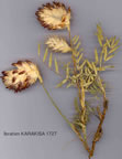 | A. vaginans DC, Astrag. 210, t. 37 (1802). Dwarf caulescent shrub with stems up to 30 cm. Leaves 4-7 cm, imparipinnate, widely spaced up stem, rachis spiny; leaflets 12-20 mm, linear-elliptic, shortly spine-tipped, glabrous above, sparsely simple sub-sericeous below, 5-10-paired; stipules 20-30 mm, glabrous, joined to more than halfway and sheathing stem. Flowers in dense globose or ovoid 20-60-flowered spikes. Bracts 10-20 mm, lanceolate, acuminate, sparsely white-hairy on margin and midrib. Calyx 15-17 mm, tubular, inflating slightly with age, long±spreading simple-white-pilose; teeth 4-6 mm, subulate. Corolla pale yellow, turning purple with age; standard 20-22 mm. Legume included in calyx, oblong, villous. Fl. 6-7. Woods, 400-1350 m. Described from the Orient. Tournefort. Scattered in S.. C. & E. Anatolia. A5 Amasya: nr. Sana, 400-450 m, Bornm. 1889:91! 37 Elaziğ: Çiftlik between Suluserai and Maden, 1200 m. Bornm. 1889:91c. C5 Içel: GülekBoğazi, Bal. 266! Adana: Bürücek, 1097 m, Balls 1243! Niğde: Bulghar Maaden, 1300 m, Siehe 1896:594! C6 Adana: d. Osmaniye, Yağlipinar S of Yarpuz, 1150-1350 m, Hub.-Mor. 16154! Endemic. |