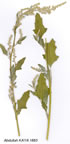 | C. album L., Sp. PL 219 (1753). Annual, 20-150 cm. Leaves 2-8 x 1-5 cm, rhombic, deltoid or ovate-lanceolate, entire or denticulate, the lower often 3-lobed, mealy beneath. Flowers in glomeruli arranged in terminal or axillary spikes, racemes or cymes. Perianth segments with a rounded keel (± sharp when dried) on the back. Pericarp free. Seed obtuse on the margins, nearly smooth with shallow, radial furrows. 1. Leaves broadly rhomboid-deltoid, broadly cuneate at the base, rounded at apex, with mostly rounded teeth subsp. iranicum 1. Leaves rhomboid-ovate to ovate-lanceolate, narrowly cuneate at the base, acute at apex, mostly sharply dentate subsp. album 2. Plants mostly stout, green; leaves ovate-lanceolate, mostly irregularly dentate, the lower teeth longest, irregular towards the apex var. album 2. Plant usually slender, often with a red-striped stem; leaves ovate-rhomboid, often red-margined, regularly dentate, gradually attenuate towards the apex var. microphyllum subsp. album. var. album. Ic: Hegi, 111. Fl. Mittel-Eur. ed. 2, 3(2): t. 96 (1960). Fl. 5-8. Waste places, cultivated land, s.1.-2000 m. Described from Europe (Hb. Linn. 318/8!). A2(E) Istanbul: Therapia (Tarabya), 29 ix 1890, Azn.! A2(A) Istanbul: Kala-miche, 22 viii l897, Azn.! Kocaeli: Pendik, 1906, Azn.! A3 Bolu: Karacasu, 700 m, Alpay 271. B5 Nevşehir: Nevşehir to Acigöl, 1400 m, D. 32785! B7 Erzincan: Selepur to Erzincan, 1250 m, Hub.-Mor. 16255. B9 Bitlis: d. Kotum, Kamer, 1900 m, D. 24578! C3 Antalya: Kemer district, 1100 m, D. 15210! C4 Konya: nr. Selçuk, D. 14782! C9 Hakkari: Cilo Da., above Sua, 2600 m, D. 24297! Eurasia, N. Africa, not certainly indigenous in N. America. |