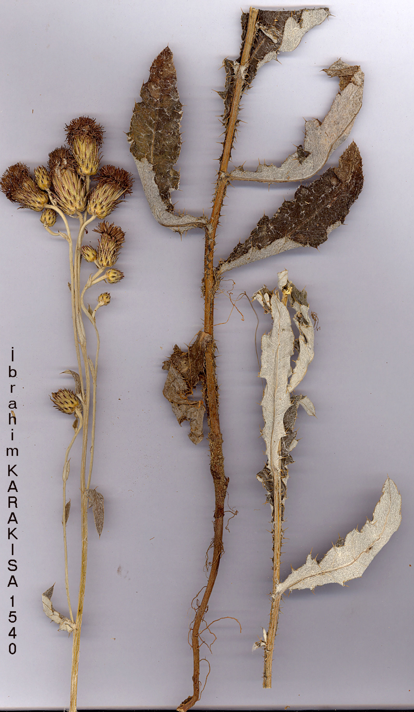| C. arvense (L.) Scop., Fl. Carn. ed. 2, 2:126 (1772). Many-stemmed, dioecious perennial, 20-100 cm, with adventitious shoots from deep wide-creeping roots. Stems unwinged, usually branched, glabrous to floccose-arachnoid. Median cauline leaves sometimes shortly decurrent, ovate to oblong, entire to pinnatisect, with weak marginal spines 1-5 mm, without setae on upper surface, glabrous to sparsely floccose-arachnoid above; glabrous to tomentose below. Involucral leaves absent. Involucres obovoid-hemispherical, solitary to c. 11 on each branch; erect, 10-25 mm. Phyllaries -9-seriate, sparsely arachnoid, with prominent vitta; median 4-10 mm incl. 0.5x0.1 mm apical spine. Corollas light purple, 14-20 mm. Achenes 2.5-3.5 mm. Pappus 21-35 mm. Fl. (5-)6-9(-J0). Roadsides, riverbanks, ditches, pastures, cultivated land, wheat and cornfields, tea plantations, steppe, Quercus infectoria-Q. castanea (sic) wood, 15-2500 m. 1. Leaves ± glabrous above and below subsp. arvense 1. Leaves tomentose below, usually sparsely arachnoid above subsp. vestitum subsp. vestitum (Wimmer & Grab.) Petrak, in schedis (1913). Syn: Serratula incana Gmelin, Reise Russl. 1:155 (1770); S. ciliata Bieb., Fl. Taur.-Cauc. 2:267 (1808); Cirsium incanum (Gmelin) Fisch. ex Bieb., Fl. Taur.-Cauc. 3:561 (1819); Charadze in Fl. URSS 28:211 (1963); C. arvense var. vestitum Wimmer & Grab., Fl. Siles. 2, 2:292 (1829); C. arvense (L.) Scop., Boiss., Fl. Or. 3:552 (1875) pro parte; C. arvense var. incanum (Gmelin) O. &B.Fedtsch., Consp. Fl. Turkestan 4:287 (1911); C. arvense subsp. incanum (Gmelin) Iljin, Fl. Yugo-Vost. SSSR 6:408 (1936). Ic: Gmelin, Reise Russl. 1, t. 36 (1770). Described from Poland. A1(E) Edirne: Sinit, A.Baytop (ISTE 22417)! A2(E) Istanbul: Vigne Fenerli, Thérapia (Tarabya), Azn.! (leaves ± entire). A2(A) Bursa; Ulu Da., 1800 m, A. &. T. Baytop (ISTE 20990)! A3 Zonguldak: 7 km W. of Kozlu, 20-30m, D. 37615! (leaves ± entire). A4 Zonguldak: Kel Tepe above Yenice, 1200 m, D. 37781! A5 Kastamonu: Tosya, Karadere to Devrendi, Sint. 1892:4972 (leaves ± entire). A6 Samsun: Samsun, 15 m, Tobey 863! A7? Trabzon: Trabzon, Turkevicz! (leaves ± entire). A8 RizHub.-Mor. 15952! A9 Kars: Kars, Tong 389! B3 Eskişehir: 10 km N. of Eskişehir, M.&D.Zohary 418! B6 Sivas: Sivas to Suşehri, 1580 m, Buttler 13991! (leaves ± entire). 38 Erzurum: 4 km N. of Erzurum, 1800 m, D. 47488! B9 Ağri: between Ağri and Horasan, 2500 m, Rech. 15079! B10 Kars: 5 km E. of Iğdir, 800 m, D. 43829! C2 Muğla: Girdev Da., 2000 m, D. 13866! C3 Isparta: 6 km S. of Karaağaç, 1500 m, Sorger 68-40-5! C4 Içel: Karaman to Mut, 1380 m, Hub.-Mor. 17315! C5 Niğde: Ulukışla, 1450 m, Siehe 439! C. Europe, Balkans, S. Russia, Crimea, Caucasus to C. Asia. Except where indicated, Turkish collections have leaves lobed to c. half their width. e: Güneyce, Ikizdere to Çamlik, 1200 m, Hub.-Mor. 15952! A9 Kars: Kars, Tong 389! B3 Eskişehir: 10 km N. of Eskişehir, M.&D.Zohary 418! B6 Sivas: Sivas to Suşehri, 1580 m, Buttler 13991! (leaves ± entire). 38 Erzurum: 4 km N. of Erzurum, 1800 m, D. 47488! B9 Ağri: between Ağri and Horasan, 2500 m, Rech. 15079! B10 Kars: 5 km E. of Iğdir, 800 m, D. 43829! C2 Muğla: Girdev Da., 2000 m, D. 13866! C3 Isparta: 6 km S. of Karaağaç, 1500 m, Sorger 68-40-5! C4 Içel: Karaman to Mut, 1380 m, Hub.-Mor. 17315! C5 Niğde: Ulukışla, 1450 m, Siehe 439! C. Europe, Balkans, S. Russia, Crimea, Caucasus to C. Asia. Except where indicated, Turkish collections have leaves lobed to c. half their width. Putative Hybrids A few possibly hybrid plants have been collected, but the putative parent species were in no cases collected with the possible hybrids. The pollen appears to be largely sterile. |