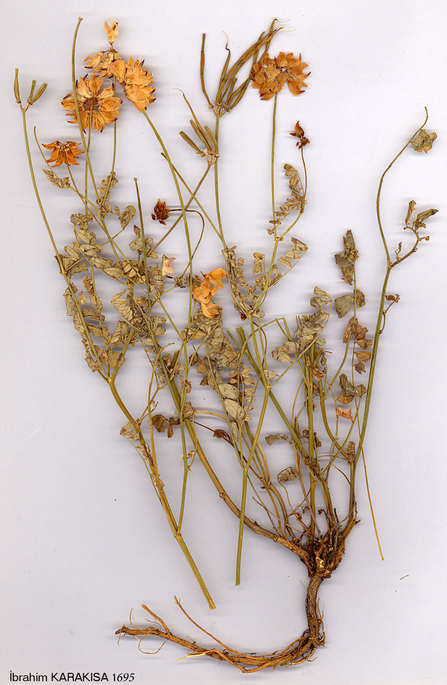 | C. varia L., Sp. PL 743 (1753). Map 98, p. 539. Perennial, ascending or procumbent herb, stems 15-50 cm. Leaves green, pinnate, with 3-14 pairs of oblong or cuneate, mucronate leaflets. Umbels 4-20-flowered, bracteoles free, ligulate, c. 1 mm, with purplish tips. Flowers 9-15 mm, lilac, white, or pink, the petal claws c. as long as the sepals. Lomenta straight, 2-8 cm x 1.5-2 mm, with 3-14 articulations. 1. Base of plant herbaceous; leaflets 8-14-paired, oblong; umbels 10-20-flowered subsp. varia 1. Base of plant twiggy; leaflets 3-7-paired, cuneate; umbels 4-8-flowered subsp. libanotica subsp. varia. Ic: Bot. Mag., 8: t. 258 (1794). Fl. 5-8. Stony slopes and in deciduous woods and scrub, cultivated ground, 250-2150 m. Described from Europe (Hb. Linn. 917/13, photo!). Widespread in Turkey, most abundant in the North. A2(E) Istanbul: Çilingoz, Hermann. A3 Bolu: Ala Da., 700 m, Khan et al. 516! A4 Ankara: Hacikadin valley nr. Keçiören, D. 18740! A5 Sinop: Çangal Da. above Ayancik, 900 m, D. 38184! A6 Samsun: Karadağ, 5 km E of Samsun, 250 m, Tobey 334! A7 Giresun: Tamdere to Yavuzkemal, nr. Karinca, 1500 m, D. 20724! A8 Gümüşane: SoğanliDa. N öf Bayburt, 1650 m, D. 32003! A9 Çoruh: Borçka to Hopa, 450 m, D. 29869! Bl Izmir: Kemalpaşa, foothills of Nif Da., Alava et al. 5032! B2 Kütahya: Tavşanli to Emet, 800 m, D. 36581! B4 Ankara: 32 km from Ankara to Polatli, 900 m, Coode & Jones 2215! B7 Malatya: Hekimhan, 1300 m, Stn. & Hend. 5240! B8 Erzurum: 15 km from Erzurum to Pasinler, 1950 m, D. 47426! B9 Ağri: Suluçem to Balik G., 2150 m, D. 47314! B10 Kars: Iğdir (Grossheim 5: map 428). C2 Muğla: 26 km from Muğla to Tavas, 1000 m, Dudley, D. 35528! C3 Antalya: Akseki to Beyşehir, 1500 m, D. 35821! C4 Konya: Küçük Köy (Konya to Çumra), 980 m, Helbaek 2537! C5 Adana: Tekir Tepesi, 1270 m, Sorger 62-68-10. C6 Adana: between Aintab (Gaziantep) and Haruniye, 500 m, Haradj. 3567! C9 Hakkari: Çukurca, 1200 m, D. 44761! C10 Hakkari: Sat Da., c. 5 km NE of Varegöz, 1900 m, D. 45709! S. & C. Europe, Crimea, S. & C. Russia, Caucasia, W. Syria, Cyprus, N. & N.W. Iran, Transcaspia. subsp. libanotica Bornm. in Beih. Bot. Centr. 31:207 (1914). Syn: C. libanotica Boiss., Diagn. ser. 1 (9): 104 (1849); C. varia var. pauciflora Gris., Spic. 1:62 (1843). Fl. 5-8. Rocky slopes and in woods, 600-2100 m. Type: [Lebanon] Libani circa Eden, vi 1846, Boissier. S. Anatolia. B6 Adana: Hadjin (Saimbeyli), B. Post 1906:537! C5 Içel; Mersin, E. side of Findikpinari, 13C0 m. Demiriz 459! Hatay: Musa Da., nr. Antioch (Antakya), 600 m, Haradj. 3167! C6 Hatay: Dörtyol, Kuzuculu to Bülke, 1000 m, Coode & Jones 442! Adana: Düldül Dağ, between Başkonus Y. and Husyin Oluk çeşmesi, 1800 m, D. 16384! Maraş: Maraş, Hb. Post. Lebanon. E. Medit. (mt.) element. Subsp. libanotica is somewhat intermediate between subsp. varia and C. parviflora. It can be distinguished from the latter by its perennial habit and lomenta which are narrower and less arcuate. Further investigation may show that this taxon deserves specific rank. |