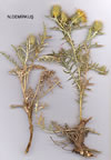 | C. nabelekii Bornm. in Öst. Bot. Zeitschr. 63:59, t. 1 f. 5, 6 (1913). Map 31, p. 339 Perennial, 20-45 cm, 5-9-headed, ± dichotomously branched. Stems slender, terete, arachnoid-woolly, soon glabrescent. Leaves finely prickly, loosely arach-noid-woolly, glabrescent above, densely white-tomentose below; basal leaves oblong-linear, 5-12 x 1.5-4 cm, pinnatipartite, with up to 12 pairs of linear or linear-lanceolate segments up to 4 mm broad; stem-leaves smaller, segments narrow, less numerous, (0.5-)l-2 cm, decurrent into wings (0.5-)l-3 cm long. Capitula 30-45-flowered. Involucre broadly ovoid, 2-2.5 cm broad incl. spines; phyllaries 90-120 (-175), arachnoid-woolly, oblong-lanceolate to linear-subuiate, basal part 2 mm, adpressed, oblong, upper part 6-10(-12) mm, reflexed or horizontally spreading. Bristles of receptacle smooth. Flowers yellow, 12-14 mm. Achenes brown, oblong-obovate, 4-5 x 2-2.5 mm, striped lengthwise, wrinkled, finely denticulate at apex. Fl. 6-9. Rocky slopes, steppe, 1300-2550 m. Type: [Turkey C9 Hakkari] Aufstieg vom Zabfluss nach Kotschanes (Koçanis), c. 1300 m, 1 ix 1910, Nâbělek 3902 (holo. BRA). S.E. Anatolia. B9 Van: Toprak Kale nr Van, 1620 m, Hub.-Mor, 8920! C9 Hakkari: Koçanis, 2550 m, D. 24313! Endemic. Ir.-Tur. element. Hub.-Mor. 8920, with less numerous phyllaries (70-86) and short (5 mm) decurrent stem leaves, is very near to C. urumiensis. |