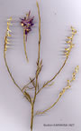| D. peregrinum L., Sp. Pl. 531 (1753), vix ed. 2 (1762). Syn: D. eriocarpum (Boiss.) Hal., Consp. Fl. Graec. 1: 32 (1901). Iα: Sibth. & Sm., Fl. Graec. 6: t. 506 (1826). Figure 2, p. 129. Virgate annual, 10-60 cm, ± adpressed-pubescent or glabrous. Median cauline leaves dissected into linear-lanceolate laciniae, upper leaves linear-lanceolate. Racemes lax or dense. Bracts about as long as pedicels. Flowers dusky violet, 20-25 mm, crisped pubescent. Blade of lower petals ± included, obovate, gradually attenuate into a ± equal claw; spur c. 2 x sepals. Follicles oblong, 5-9 mm, often pilose. Fl. 6-8. Calcareous slopes, fallow fields, vineyards, etc., s.l.-1300 ın. Type: specimen in Hb. Cliff. (BM!). Mainly W. & S. Anatolia, Mesopotamia, Islands. A1(E) Tekirdağ: above Tekirdağ, 100 m, D. 39289! A2(E) Istanbul: Küçükçekmece to Florya, 2 viii 1891, Azn.! A2(A) Bursa: foot of Bithynian Olympus (Ulu Da.), Kirk! Bl Balikesir: Adramyttium(Edremit)nr. Seitinly, Sint. 1883: 1441! B2 Kütahya: Gediz, 850m, D. 36884! B4 Ankara: Ankara, vii 1941, Başarman! B7 Tunceli: Hozat to Pertek, 1300 m, D. 31567! Cl Muğla: d. Marmaris, Datça to Knidas, 270 m, Khan et al. 90! C2 Denizli: Abbas to Acıpayam, D. 13473! C5 Içel: Tarsus, Balls 1207! C6 Hatay: Belen, Kirk Khan, Sint. 1888! C7 Adıyaman: Tschermisch N of Kahta, Hand.-Mazz. 1940. C8 Mardin: Mardin, Binibil, Sini. 1888: 1204! Is.: Ikaria, Fors.-Maj. 620; Kos, Rech. 8096; Lesvos, Cand.; Psarra, Werner; Rodhos, Rech. 8409a; Samos, Gathorne-Hardy 3461! Symi, Rech. 8485. E. Mediterranean area, eastwards to N. Iraq, N.W. & W. Iran. Centred in the E. Medit. region, but extending into Ir.-Tur. areas. Whereas glabrous-fruited forms predominate in the Balkans, most of the Turkish and Oriental material has pilose follicles (var. eriocarpiim Boiss.). The species shows its maximum variation in S. Anatolia. Variants with a condensed inflorescence have been described as var. densum Post. |