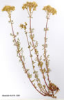 | H. scabrum L., Cent. PL 1: 25 (1755). Syn: H. cymosum Hochst. in Lorent, Wanderungen 342 (1845)! H. galioides Freyn & Sint. in Bull. Herb. Boiss. 3: 103 (1895) non Lam. (1797). Ic:: Ledeb., Ic. PL Ross. 1: t. 17 (1829). Figure 11, p. 359. Map 25, p. 377. Stems (10-)15-45(-60) cm, erect or decumbent at the base, glabrous, scabrid with unbranched red-gland-tipped emergences or rarely smooth and eglandular. Leaves on main stems 7-20(-25) mm, oblong or oblong-elliptic to lanceolate or linear, sometimes revolute, rounded to mucronate, glabrous or slightly undulate-papillose, rarely glaucous. Inflorescence corymbose, 15-many-flowered. Sepals oblong, subacute to rounded, ⅓-|⅔ united, irregularly glandular-denticulate to -ciliate or eglandular-ciliate to subentire. Petals 5-7(-8) mm. Capsule 5-8 mm, ovoid or ovoid-trigonous, not or scarcely rostrate. Fl. 5-8. Dry rocky slopes, open woodland or steppe, 750-3200 m. Described from 'Arabia' (Hb. Linn. 943/18!). A4 Ankara: Hacikadin valley nr. Keçiören, D. 18838! A5 Kastamonu: Tosya, Guiardagh, Sint. 1892:4158! A7 Gümüşane: Stavri, 2500 m, Balls 524! A8 Gümü-şane: nr. Bayburt, Bourgeau 66! A9 Erzurum: Horasan to Karaurgan, 2000 m, D. 29497! B3 Konya: Sultan Da., c. 1500 m, Reese 2523! B5 Nevşehir: Nevşehir, 1200 m, D. 19085a! B6 Sivas: nr. Zara, 1300-1400 m, Bornm. 1982: 3292! B7 Elazığ: Harput, Şuşnas, Sint. 1889: 467! B8 Erzurum: Tech Da., vii 1853, Huet! B9 Van: Artos Da., 3000 m, McNeill 753! C2 Denizli: Honaz Da., 800 m, Hub.-Mor. 5227! C3 Antalya: Manavgat to Akseki, 1400 m, Dudley, D. 35808! C4 Antalya: Alanya mountains, Byles 1793! C5 Niğde: Bulgar Maaden, 1700 m, Siehe 494! C6 Maraş: Ahir Da., 840 m, Balls 956! C7 Adıyaman: Nemrutdağ, Hand.-Mazz. 2100. C8 Siirt: Siirt, 1150 m, Frödin 43! C9 Hakkari: Kara Da., 2850 m, D. 24446! S.W. Asia. Ir.-Tur. element. Plants with eglandular or almost eglandular stems occur sporadically in C. Anatolia and Iran; but this character is incompletely correlated with others, and cannot, therefore, justify recognition of these plants as a distinct taxon (H. scabrum var. laeve Boiss. & Noë) cf. Robson in Notes R.B.G. Edinb. 27: 193 (1967). Specimens with smooth stems always appear to have apiculate or mucronate leaves and can thus be distinguished from the yellow variety of H. capitatum which has rounded or bluntly apiculate leaves as well as a more rounded inflorescence. |