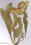 | I. helenium L., Sp. PI. 881 (1753). Ic: Hegi, 111. Fl. Mittel-Eur. 6(1):476, f. 240 (1917), subsp. helenium. Perennial herb with thick aromatic rhizomes. Stems ± erect, 1-2 m, pubescent or densely spreading-pilose, branched above. Basal leaves ovate-elliptic, 40-50 cm (incl. 10-15 cm petiole) x 12-20 cm, acute, gradually attenuate at base, margin coarsely serrate, papillose to adpressed pilose above, pubescent or sub-tomentose beneath; upper leaves smaller, ovate, sessile, semi-amplexicaul, rounded and subcordate at base. Capitula radiate, large, usually 5-20 in lax corymbs or narrow racemes. Involucre (l∙5-)2∙5-4∙5 cm broad; phyllaries imbricate or subequal, 6-7-seriate; outer ones lanceolate, 2∙5-4∙5 x 0∙75-1∙25 cm, foliaceous and longer than inner ones or ovate, 0∙75-1∙5 x 0∙5-1 cm, shorter than inner ones, herbaceous, densely pubescent or tomentose sometimes with brown margins; inner ones acuminate, 1∙5x0∙15 cm, membranous. Ray flowers (15-)75-100, ligules (3-)10-30 mm. Disc flowers 8∙5-10∙5 cm. Achenes 5-angular, 2∙75-3∙5 mm, glabrous or minutely pubescent at apex. Pappus brownish, 6-10 mm, hairs 40-60, barbellate, connate at base. Fl. 7-9. Stream or lakesides, often in forests or scrub, 1000-2560 m. Although the species is probably of Euro-Siberian (possibly Euxine) origin, two of the four Turkish subspecies are now confined to mesophytic habitats in the Irano-Turanian region. 1. Outer phyllaries foliaceous, longer than inner ones; involucre 3∙5-5 cm broad; ligules 25-30 mm subsp. orgyalis 1. Outer phyllaries scarcely foliaceous, shorter than inner ones; involucre 2-3 cm broad; ligules less than 20 mm 2. Ligules few (c. 15), 3-6 mm, scarcely longer than involucre subsp. vanensis 2. Ligules numerous, 10-15 mm, obviously longer than involucre 3. Capitula borne on short side branches of inflorescence of racemose or spicate form subsp. turcoracemosa 3. Capitula borne on long side branches of inflorescence of corymbose form subsp. pseudohelenium subsp. orgyalis (Boiss.) Grierson in Notes R.B.G. Edinb. 33:249 (1974). Syn: I. orgyalis Boiss., Fl. Or. Suppl. 291 (1888). Map 4, p. 59 Type: [Turkey B9 Van(?)] Semina misit cl. Kotschy unde plantam in horto Valeyres cultam descripsi (G, photo E!). N. & N.E. Anatolia. A4 Zonguldak: Kel Tepe above Yenice, 1350 m, D. 37799! Kastamonu: Daday to Eflani, 1000-2000 m, D. 38636! A9 Çoruh: Yalnizçam Da. below Kutul, 1900 m, D. 32462! Endemic. Euxine element. As all the above wild-collected material comes fromN. & N.E. Anatolia, it seems reasonable to doubt that the seed originally came from Van, as Boissier recorded it. |