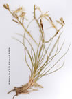 | N. balansae Briq. in Anım. Cons. Jard. Bot. Geneve 5:77 (1901). Syn:iV. ossifragum sensu Boiss., FL Or. 5:329 (1882) non (L.) Hudson (1762); N. caucasicutn Miscz. in FL Cauc. Crit. 2(4): 82 (1912). Stera slender, 15-50 cm. Turion leaves dark green, stiffly divergent, linear, (40-)70-200 x 2.5-50-8) mm, 5-11-veined, apex obliquely cucullate, base with broad scarious sheathing margins; cauline distant, slightly divergent from stem but suberect. Raceme dense, 10-20-fiowered, oblong, 4-9 cm. Perianth segments yellow, linear-oblong, 6-7 mm. Filaments densely villous except at apex; anthers yellow. Capsule longer than persistent erect perianth segments. Fl 7-8. Boggy arms, wet banks, edges of stream;, in peaty pastures, 200-2200 m. Type: [Turkey A8 Rize] region alpine du Lazistan, au-dessus de Djimii (Çimil), 2200 m, Balansa (holo. G). N.E. Anatolia; rare, A7 Giresun: Imbaş, below Kizil Ali Y., 1300-1600 m, Hand.-Mazz. 7721 A8 Çoruh: 9 km from Hcpa to Arhavi, 200 m, D. 47711 (very robust)! Sawal lepe above Murgul, 16G0 m, D. 32240! Caucasus (Ahkhazya), Euxine element. A very local species confined in Turkey to a few small boggy areas. Differs from N. ossifragum (L.) Hudson in its compressed vagmate basal leaves, cauline leaves diverging from stem, and anthers with villous filaments, and from N. scardicum Kol in its usually taller habit, 6-7 mm perianth segments and longer leaves. |