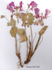 | P. endlicherianum Fenzl, Pug. 6 (1842). Ic: Bot. Mag. 82: t. 4946 (1856); Grossh. Fl. Kavk. 6: t. 32 (1962). Map 43, p. 489. Pubescent, rhizomatous perennial, 15-35 cm. Basal leaves long-petioled, orbi-cular, crenate, very shortly and palmately lobed. Stem leaves alternate, few, palmately lobed. The two upper petals magenta-carmine, recurved, much larger than the minute lower 3 petals. Beak of fruit 25-38 mm. Type: [Turkey] in montibus Tauri occidentalis, Kotschy 109. A3 Ankara: Nallihan, 650 m, D. 37029! A8 Çoruh: d. Artvin, nr. Odschoch, Woronow 266! A9 Çoruh: Kömürlü (Grossheim 6: map 32). B5 Seyhan: Hacin (Saimbeyli), Maniss. 846! B6 Sivas: Gürün to Pinarbasi, 11 km W of Gürün, 1400 m, Hub.-Mor. 15006. B7 Tunceli: Munzur Da. above Ovacik, 1500 m, D. 31221! C2 Muğla: Sandras Da., 1400 m, D. 13592! C3 Isparta: d. Sütçüler, Dedegöl Da., 1300 m, D. 15922! C4 Konya: Göksu valley above Ermenek, 1845, Heldr.! Ç5 Niğde: Bulgar Maaden, 1400 m, Siehe 1896:570! C5/6 Hatay: Amanus, G. Post. C6 Maraş: Ahir Da., Haradj. 1705! Syrian Desert. Found mainly in areas transitional between the Medit. and Ir.-Tur. regions. This species, together with the allied and recently discovered P. quercetorum Agnew from N. Iraq, belong to Sect. Jenkinsonia (Sweet) Harv., whose other members all grow in the Cape province. P. quercetorum should be looked for in the oak belt of S. Hakkari.* It differs from P. endlicherianum in its larger size, less hairy or glabrescent leaves with lobed and dentate segments, more numerous shorter pedicels, and narrower upper petals. |