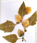 | P. alkekengi L., Sp. PL. 183 (1753). Ic: Fl. Danica 10: t. 1636 (1819)-Hegi, III.Fl. Mittel-Eur. 5(4): t. 233 (1927). Stems erect, 30-60 cm, simple or branched, shortly hairy above. Leaves ovate, entire to weakly sinuate, lamina 4-15 cm, petiolate. Calyx 5-7 mm, divided to 1/2way into triangular acute teeth, fruiting calyx subglobose, membranous, orange-red, 3-5 cm diam., teeth 5 mm. Corolla greenish white, 15-20 mm diam. Berry shining orange-red, 10-17 mm diam. Fl. 5-10. Woods, river-banks, s.l-2100 m. Described from Italy (Hb. Linn. 247/5, photo). N. Turkey, S. & C. Anatolia; local. Al(K) Tekirdağ: nr Uçmakdere, N. & E. Özhatay (ISTE 30448)! A2(E) Istanbul: Çilingoz, A.Baytop (ISTE 11952)! A2(A)' Bilecik: Bektemir, banks of Sorgundere, Peşmen (EGE 8696)! A3 Sakarya: Dohurcuk, Tekin 30719! A5 Amasya: Amasya, Wiedemann A6 Samsun: Çarşamba, Yeşilirmak valley, Çetik 587! A7 Giresun: Yavuzdere to Tamdere, c. 6 km S. of Yavuzdere, 1000-1050 m, Hub-Mor. 15659! A8 Erzurum: 5 km N. of Tortum G., 700 m, D. 47654! B2 Kütahya: Simav, Regel (EGE 2100)! B8 Bitlis: Mezra'a-i Nazar (Mezrevarabin), 15 km S. of Kara-suyi Sufla (Karasu), 1200 m, Frödin 151. C3 Antalya: Kargiçay, above Alanya, D. 14419! C4 Konya: Ermenek, Sarivadi, 1200 m, D. 16218! C5 Adana: Kozan to Feke, 15 km N. of Kozan, 300-330 m, Hub.-Mor. 15660! C6 Hatay: Dumanli Da. (Amanus), Haradj. 3708! C9 Siirt: d. Ramuran, Tell Mişar, 760 m, Nâbélek 2045. C. & S. Europe, N., W. & C. Iran, C. Asia. Introduced to N. America. |