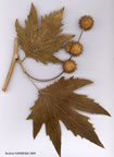 | P. orientalis L., Sp. PL 999 (1753). Ic: Hegi, I11. Fl. Mittel-Eur. 4(2):661 (1922);Polunin, Trees & Bushes of Europe 72 f. b-d, 190 f. 4 (1976). Map 76. Tree to 30 m. Trunk to 16 m in girth at base (in Bursa), branches widely spreading. Bark on older trunks consisting of small, square, dark brown, per-sistent plates. Leaves deeply 3-5(-7)-lobed to c. 3/5, 11-18 x 12-24 cm, broadly cuneate or truncate at base, lobes longer than broad, 7-11 x 2.5-6 cm, coarsely toothed or entire, glabrous or subglabrous at maturity. Petiole 2.5-7.5 cm. Fruiting heads 3-6, on long pendulous axis to 13-19 cm. Fl. 3-5. In forests, valley bottoms, alluvial soils rich in pebbles, by rivers; widely cultivated as a street tree and elsewhere, s.l.-1100 m. Described from Asia, 'Tauro' [S. Turkey], Macedonia, Mt. Athos, Lemnos and Crete (Hb. Linn. 1133/1,2! BM-Hb. Cliff. 447/2!). Widespread; often planted. A1(E) Edirne: Sarayiçi, A. & T. Baytop (ISTE 6555)! A1(A) Balikesir: Erdek, Siğir yatağı, 400 m, Çaki (ISTO 8638)! A2(E) Istanbul: d. Büyükdere, Çayirbaşi to Belgrad forest, Yalt. obs. A2(A) Bursa: d. Mustafakemalpaşa, Devecikonaği, Göksin & Sümer (ISTO 17362)! A3 Ankara: d. Nallıhan, Berber De., 630 m, Altan & Cenk (ISTO 5768)! A4 Zonguldak: Karabük to Yenice, Yalt. obs. A5 Sinop: d. Ayancik, Cevizli, 250 m, Yilmaz (ISTO 9722)! A6 Tokat: d. Niksar, Emek obs. A7 Trabzon: d. Maçka, Esiroğlu, Galyan De., 500 m, Anşin (ISTO 16206)! B1 Balikesir: Kaz Da., 600 m, A. Baytop (ISTE 6041)! B2 Kütahya: Simav to Değirmenci, N. of Akçakertik pass, 1000 m, Coode & Jones 2772! B3 Eskişehir: Gökçekaya dam, 700 m, Ekim 708(!) B4 Ankara: Vali Doktor Resit Caddesi, Ankara, Murray 886(!) — planted. B7 Tunceli: d. Çemişgezek, Tapar Çayı, 900 m, Balci (ISTO 7608)! B8 Bingöl: Dolhan, Paşanın bahçesi, 900 m, Deste (ISTO 17037)! B9 Bitlis: Hizan, Nazareaz, 1000 m, Peşmen3356. C1 Muğla: d. Milas, Beypinari, Odabaşi obs. C2 Muğla: d. Köyceğiz, Sandras Da., 900 m, E. Özhatay (ISTO 19621)! C3 Antalya: d. Kemer, Ulupinar serisi, 1100 m, Iyicil (ISTO 6046)! C4 Içel: d. Mut, nr Göktepe, Yalt. obs. C5 Adana: Gülek boğazi, 700 m, Coode & Jones 200! C6 Maraş: d. Andirin, Sarimsak Da., 1100 m, Esin & Çakir (ISTO 7209)! C8 Diyarbakir: Diyarbakir, D. 22132b (!). C9 Hakkari: Zap gorge below Çukurca, 700-750 m, D. 44847! Is: Lesvos, Cand.; Samos, Rech. 1961; Ikaria, 3-5 km E. of Evdilos, s.l., D. 40596(0; Kos, Rech. 8098; Rodhos, Fiori 129. Balkans, Crete, W. Syria, N. Iraq, Iran, eastwards to Himalayas. In Turkey certainly native at least in Outer and S.E. Anatolia. P. hybrida Brot., Fl. Lusit. 2:487 (1804) (Syn: P. acerifolia(Alton) Willd.), the London Plane, is commonly planted as a street tree in the Istanbul area. It is distinguished by its less deeply divided leaves, the middle lobe nearly as broad as long, longer fruiting heads 2(-3) together, and bark which exfoliates in large flakes on older trunks. It is either a hybrid between P. orientalis and P. occidentalis L. or a cultivar of the first (Fl. Europaea 1:384, 1964). |