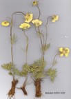 | R. dissectus Bieb., Fl. Taur.-Cauc. 2: 25 (1808). Perennial, 5-20 cm, glabrous, pilose or villosulous. Rhizome oblique; collar strongly fibrous. Stem 1-3-flowered, erect or sometimes procumbent. Radical leaves trisect to subpinnatisect, central segment sessile or long-stalked; lamina round to broadly ovate, segments deeply dissected into toothed or entire laciniae of variable form. Upper leaves 1-3-sect into linear laciniae. Sepals spreading. Petals 8-18 mm. Achenes obovate-semicircular, 2-3 mm, compressed, glabrous, without a conspicuous nerve parallel to the margin; beak uncinate or circinate, 0.5-0.75 mm. A very polymorphic, dwarf, few-flowered species, allied to R. caucasicus and R. fenzlii, but differing (among other characters) in having achenes without a prominent nerve parallel to the adaxial margin. Subsp. dissectus is confined to mountain Crimea, but 5 other subspecies can be recognised in Anatolia where the complex has its centre in the North-East.* 1. Flowers large, usually 3-3.5 cm across. (Leaves suborbicular in outline; laciniae oblong-linear (sometimes cuneate-oblong) with short lateral teeth, densely adpressed-pilose, rarely glabrescent. Stems erect, sturdy, 10-25 cm, often 1.5 mm thick) subsp. napellifolius 1. Flowers smaller, less than 3 cm across 2. Laciniae cuneate-oblong and mostly tridentate at apex; leaves usually sub-orbicular in outline, villosulous like the stems. (Flowers 15-20 (often 20) mm across. Stems sturdy) subsp. huetii 2. Laciniae lanceolate, oblong-lanceolate or linear-lanceolate, entire or with one or more slender lateral teeth; leaves ovate or suborbicular in outline, glabrous or subpilose 3. Laciniae linear or linear-lanceolate, 1-1.5 mm broad, subentire, glabrous, very numerous; lamina ovate-orbicular, 2-3 cm long; sepals glabrescent. (Flowers 15-20 cm across. Plant very slender) subsp. rigidulus 3. Laciniae lanceolate or oblong-lanceolate, mostly 1.5-2 mm broad, often with one or more lateral teeth, glabrous or subpilose; sepals hairy 4. Lamina 3-5 cm long, ovate in outline; laciniae 3-15 mm long; stem sturdy (1.5 mm thick), procumbent-ascending and 2-3-flowered; rootstock thick (often 1 cm broad); flowers usually 20-27 cm across . subsp. glabrescens 4. Lamina 1-3 cm long, suborbicular or ovate in outline, laciniae or teeth 3-8 mm long; stem slender (scarcely 1 mm thick), erect, 1-2-flowered; rootstock slender, usually less than 5 mm broad; flowers 15-20(-25) mm across subsp. sibthorpii subsp. napellifolius (DC.) Davis in Notes R.B.G. Edinb. 23: 137 (1960). Figure 4. p. 157. Syn: R. napellifolius DC, Syst. 1: 282 (1817)! Fl. 6-7. Mountain slopes. 1800-2800 m. Type: [Turkey] in Cappadocia, Tuurnefort (P!). Cappadocia, N. Armenia, Kurdistan.J Kurdistan, 2?ra«/ & Strangwaysl A6 Sivas: Yildiz Da.. 2400 m, Bornm. 1890: 1662! A8 Erzurum: Tech. Da. (Palandöken Da.) above Erzurum. 2100-2400 m Hue 11 A9 Kars: Kisir Da., 2800 m, D. 30544! d. Kağızman, Turkevicz 1914: 81 (latisect form)! Soviet Armenia. Intermediates occur between this taxon and R. caucasicus (e.g. D. 30572 from Kisir Da., collected at an altitude between that of the putative parents). |