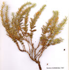leafy portion 5-10 cm, puberulent; hairs patent, mostly 0.1-0.2 mm. Leaves cuneate-oblanceolate, 10-15 x 2-3.5 mm, acute, mucronate, sparsely scabrid-hirtellous, greyish. Inflorescence somewhat dense, ovate-oblong, 2-3 cm. Verticillasters 2-flowered, flowers shortly pedicellate. Floral leaves 1.5-4 x flowers. Calyx 3-3.5 mm, actinomorphic, sutural veins weak, pubescent; teeth lanceolate-subulate, 1/2 x calyx. Corolla 7-8 mm, probably white. Nutlets unknown. Fl 8-9. Alt. 1220-1980 m. Type: Turkey C6 Adana: Kusliji Dagh (Kislici Da.), 1520-1980 m, viii 1908, Haradjian 2507 (holo. E! iso. K!). S. Anatolia (Amanus). C5/6 Hatay/Adana: Amanus, 1220-1830 m, Haradj. 4618! Endemic. E. Medit. (mt.) element. Showing close affinities with the glabrous S. montana L. as circumscribed in Fl. Europaea 3:164 (cf. Ball in Bot. J. Linn. Soc. 65:350-352, 1972) and withS. cuneifolia. |