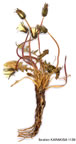 | T. scaturiginosum G.Hagl. in Ark. Bot. 26A(5):26 (1933). Syn: T. murbeck-ianum G.Hagl. in Bot. Not. 1939:538, f. 3 (1939)! T. albanicum van Soest in Acta Bot. Neerl. 14:13, f. 1 (1965). Plant ± glabrous, scape only arachnoid below capitulum. Leaves lobate, often with long terminal lobe; petioles red, often median nerve as well. Outer phyllaries ± ovate, loosely adpressed, with a rather broad, whitish or pale green margin; involucre dark green, c. 14 mm long. Ligules yellow, with dark violet stripes on outside; stigmas dark grey to blackish; pollen present. Achenes spinulose near apex, 4.5-5.5 mm (incl. 1-1.7 mm cone), straw-coloured; beak c. 7.5 mm; pappus pure white, c. 6 mm. Fl. 3-6. Damp places, up to 2500 m. Type: [Greece] Phocis: Arachova, in scaturiginosis ca. 1000 m, Samuelsson 266(holo. SI). N.W. Turkey & Inner Anatolia. A1(A) Çanakkale: Renkoei (Erenköy), Sint. 1883:260! A2(E) Istanbul: Büyükdere to Bahçeköy, 7 v 1907, Azn.!Kocaeli:Izmit, D. 26253 p.p.! A5 Amasya: Amasya, Manias. 80a! A7 Gümüşane/ Trabzon: Zigana Da., Sint. 1894:5594! B6 Maras: Topalli between Elbistan and Malatya, 1700 m, D. 27686 p.p.! B9 Van: above Darnis Aşaği, N. of Çatak, 2500 m, Frödin 393 (type of T. murbeckianum)! C9 Siirt: Pervari, 1300 m, Frödin! Switzerland, Italy, Poland, Balkans. The three taxa mentioned above differ in minor details and are considered as a single species; though it must be noticed that, according to the original description of T. murbeckianum, this species seems to have a longer achene cone than the other two; 1.5-1.7 mm, instead of 1-1.2 mm. |