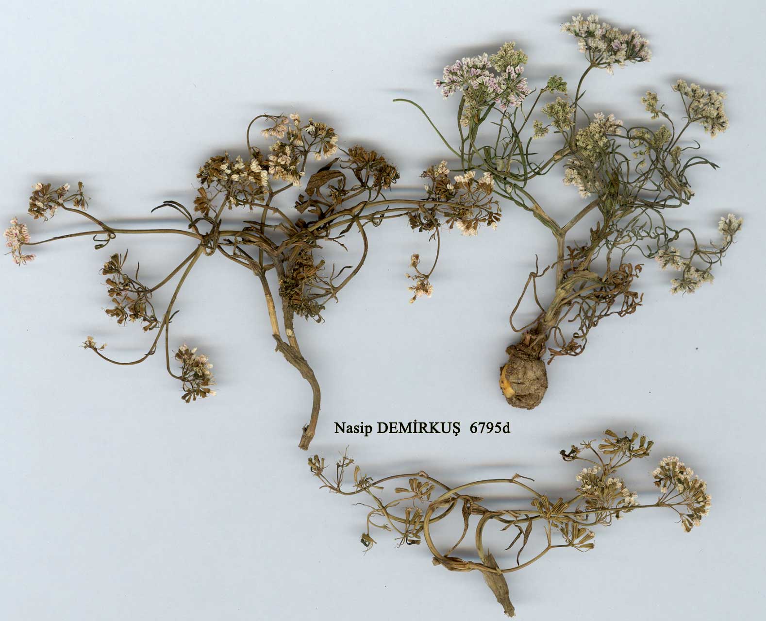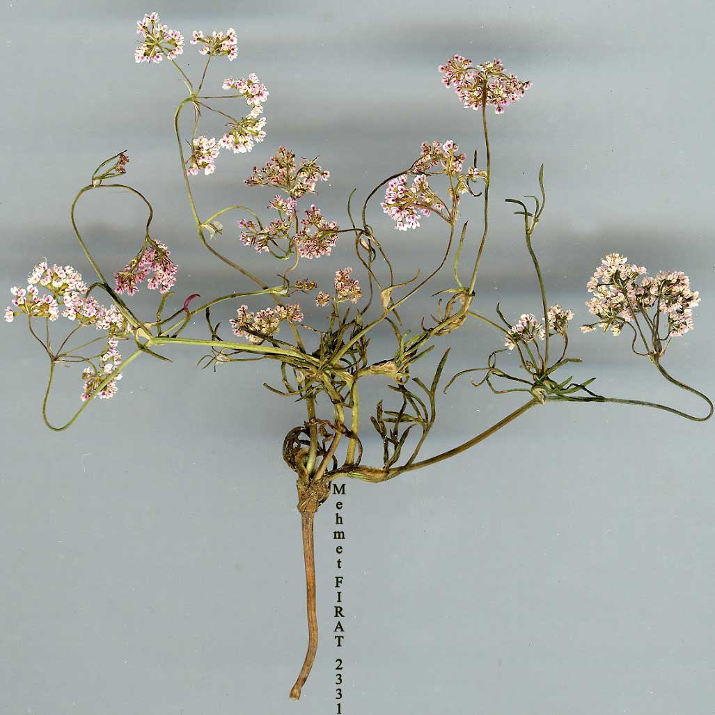 | B. brachyactis (Post) Wolff in Engler, Pfianzenreich 90 (IV. 228): 196 (1927). Syn: Canım brachyactis Post in J. Linn. Soc. (Bot.) 24:428 (1888); Bunlum rhodocephalum Hand.-Mazz. in Ann. Nat. Hofmus. Wien 27:50 (1913). Ic: Ark. Bot. ser. 2, 5: f. 34(1959). Glabrous perennial with slender branched procumbent or ascending terete finely ridged stems up to 15 cm. Basal leaves ovate, 1-2-pinnate, 5-8 x 2.5-3.5 cm; ultimate segments ovate with oblong-spathulate rounded lobes, 7-17 x 10 mm. Upper cauline leaves few with linear lobes. Rays 4-8, equal, 3-10 mm. Bracts 3-6, 2-7 x 0.5-1 mm. Bracteoles 3-6,2-3.5 x 0.5 mm. Flowers white, 8-15 per umbellule. Fruits oblong, glabrous, c. 3x1.5 mm; styles 2-3 mm; stylopodium flat. Fl. 7. 1830-3150 m. Type: [Turkey C6 Maraş] vii 1886, Ahir Dagh, G. Post (BEI, photo K!). Anti-Taurus and S.E. Anatolia, rare. B8 Bitlis: Meleto Da., 2750-3150 m, Hand.-Mazz. 2861.(type of B. rhodocephalum). C6 Maraş: Ahir Da., 1830 m, Haradj. 1594! Endemic. A seldom-collected species recognized by the short rays and the oblong-spathulate leaf lobes. It is clearly related to the previous species but from the specimens examined appears to be distinct. |