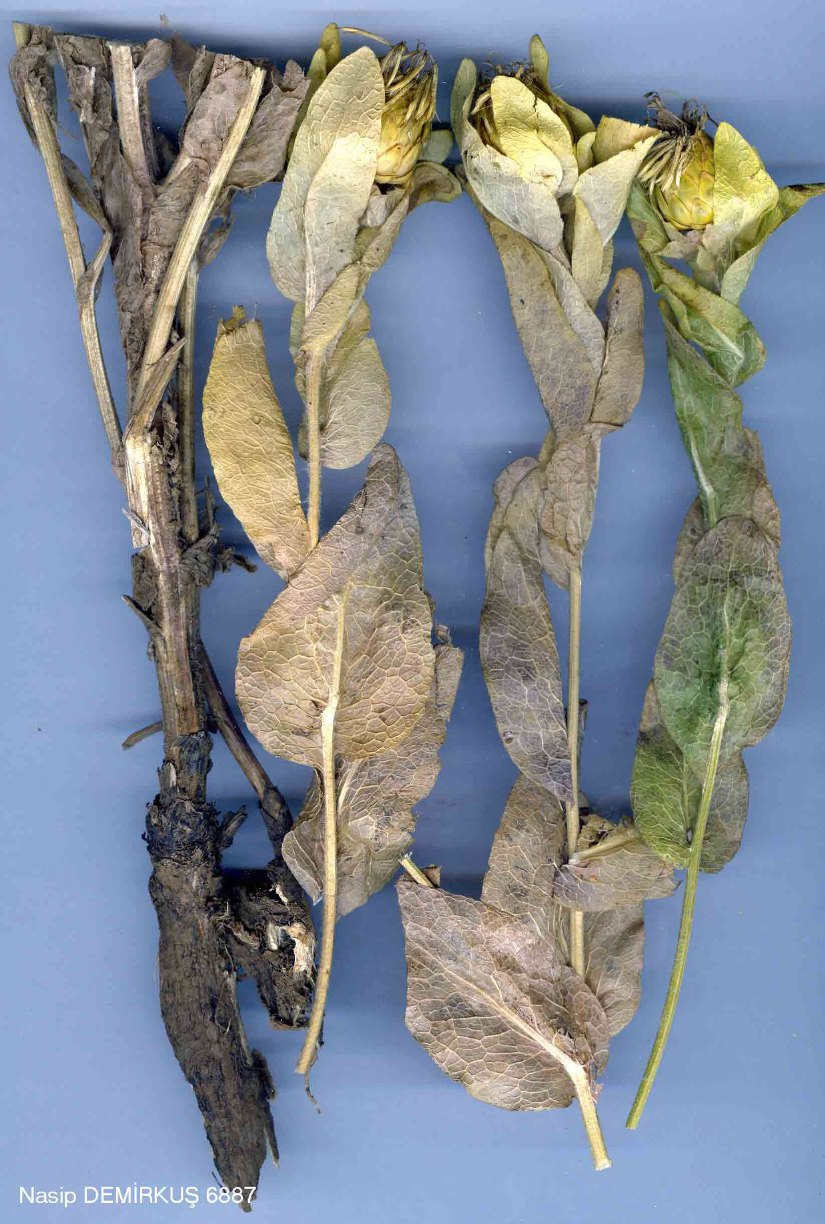 | C. polypodiifolia Boiss., Diagn. ser. 1(6): 126 (1845). Biennial or perennial with thickened taproot, 25-75 (or more?) cm, with numerous branches, capitula corymbosely arranged. Stem, branches, and lowerleaves with crisp articulate hairs, other leaves ± glabrescent. Leaves firm, with elevated nerves; basal pinnatifid with 6-8(-10) pairs of linear-lanceolate acute segments (sometimes lobed near base), lower pinnatilobate, median ovate-oblong, broadly decurrent, upper-ovate to lanceolate, shortly decurrent or sessile. Involucre 16-22 x (8-)9-17 mm, contracted towards top. Appendage a minute deciduous tip, a pinnate spinule up to 6 mm, or lanceolate and ciliate, always small, not concealing basal part of phyllaries. Flowers yellow. Achenes 4-5 mm; pappus 4-8 mm. Fl. 6-8. Rocky slopes, steppe, fallow fields, 800-2500 m. 1. Appendage very small (0.5-2.5 mm) and easily deciduous, a simple spinule or with 1-2 pairs of minute teeth 2. Involucre 8-13 mm broad, rarely broader; upper leaves narrowly lanceolate, not concealing involucre var. polypodiifolia 2 . Involucre 14-17 mm broad; upper leaves broadly lanceolate to oblong, ± concealing involucre var. szovitsiana 1. Appendage larger (3-6 mm), partly persistent, with 2-4 mm cilia var. pseudobehen var. szovitsiana (Boiss.) Wagenitz in Notes R.B.G. Edinb. 33:229 (1974). Syn: C. szovitsiana Boiss., Fl. Or. 3:683 (1875)! Type: [USSR] in siccis lapidosis vallis Koschadara Armeniae Rossicae prope Nackitschewan, 1 vii 1829, Szovits 454 (G! W!). E. Anatolia. B7 Tunceli: Pülümür, 1600 m, D. 30922! B9 Bitlis: Pelli Da. pass, 2400 m, D. 22615! Van: Pelli Da., 1 km E. of pass, 2150 m, Hub.-Mor. 10887! C7 Urfa: Tel Pinar nr Siverek, Sint. 1888:767 (atypical)! |