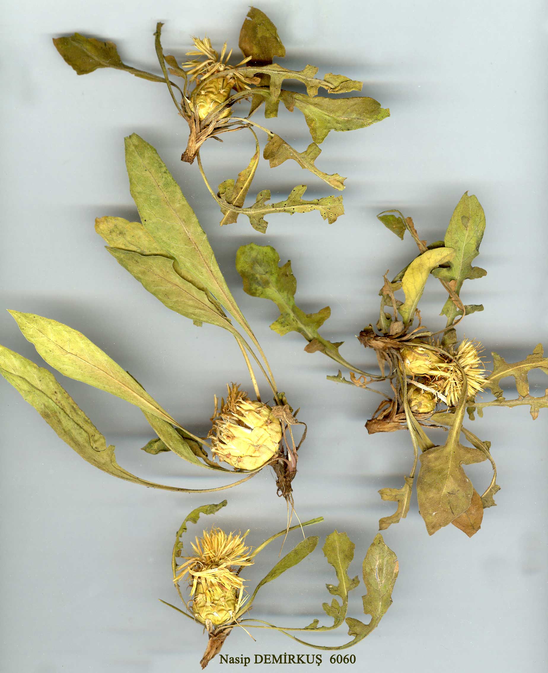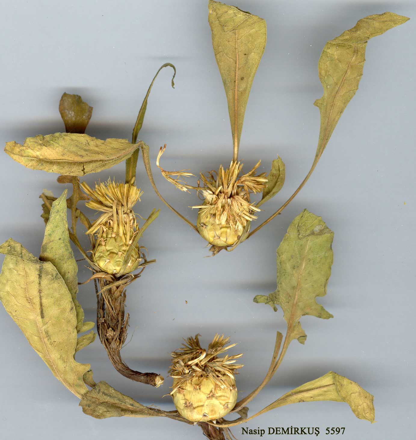| C. rhizantha C.A.Meyer, Verz. Pfl. Cauc. 64 (1831). Syn: C. glaucescens Fisch. & Mey. in Ann. Sci. Nat. sér. 4, 1:31 (1854)! C. grossheimii Sosn. in Bot. Zhurn. 34(3): 288 (1949)! C. sessilis Willd. var. pinnatiloba Rech. fil. in Symb. Bot. Upsal. 11(5):33 (1952)! C. rhizanthoides Tzvel. in Fl. URSS 28:620(1963)! Ic: Fl. URSS 28: t. 27 (1963). Perennial with woody rootstock (sometimes profusely branched). Capitulum solitary, sessile or nearly sessile (stem up to 2 cm, very rarely more) in a rosette of leaves. Leaves sparsely to densely covered with septate hairs, very variable in outline, most often lyrate with triangular to lanceolate terminal segment and l-3(-4) pairs of smaller lanceolate lateral segments or broadly lanceolate and entire or with a single lobe near base on each side. Involucre 15-20(-23) x 10-15(-18) mm, ovoid. Appendages small, straw-coloured to light brown, erect or reflexed, narrowly triangular, with l-4(-5) pairs of cilia (1-3 mm) and terminal l-4(-5) mm spinule, appendages sometimes reduced to a mere spinule. Flowers yellow, marginal not radiant. Achenes 5-6 mm; pappus 1-2 mm. Fl. 6-7. Rocky slopes and screes, 900-3600 m. Type: [Talysh] in campis altiorum montium Talüsch, alt. 1829-2011 m, C.A.Meyer (LE! G!). Mainly E. Anatolia. A5 Amasya: Logman, 900-1000 m, Bornm. 1889:1098! A8 Erzurum: pass W. of Tortum, 1900 m, Markgraf 10994! A9 Kars: Konk, between Ardahan and Yalnizçam, 1950 m, D. 29609! B3 Afyon: Mehmedkoi, 1000 m, 1848, Tchihatcheff (type of C. glaucescens)! B5/6 Kayseri/Sivas: Kayseri to Sivas, 1200 m, Balls 1433! B6 Sivas: 17 km from Gürün to Sivas, 1680 m, Hub.-Mor. 11949! Maraş/Malatya: Elbistan to Darende, G.Post 515! B7 Tunceli: Munzur Da. above Ovacik, 2200 m, D. 31211! B9 Erzurum: Çakmak Da. above Karayazi, 2350 m, Watson et al. 1630! Ağri: between Ağri and Doğubayazit, 1670 m, 22 vi 1964. M.Zohary & Plitm.! Bitlis: Pelli Da. above Pelli, 2750 m, D. 22475! B9 Van: Kerikas Da. S.W. of Arpat, 2700 m, Frödin 109 (type of C. sessilis var. pinnatiloba)! Kavuşşahap Da., 3200 m, D. 23106! C9 Hakkari: Kale Mame supra Hoz, 2600 m, Nábélek 3682! C1O Hakkari: Cilo Da., 3600 m, D. 24195! D. 24218! Transcaucasia, N.W. Iran. Ir.-Tur. element. Related to C. sessilis and C. armena. Plants with the appendages reduced to a mere spinule and plants with undivided leaves look rather distinctive but it seems impossible to separate them from the more typical plants with which they are connected by numerous transitional forms. There are some collections with the appendages larger and with more cilia ± intermediate between C. rhizantha and C. armena, e.g. A8 Erzurum: 2 km N. of Karayollari gölyurt bakimevi, 2300 m, Battler 14217! B7 Erzincan: nr Sürek, Sint. 1889:1063! |