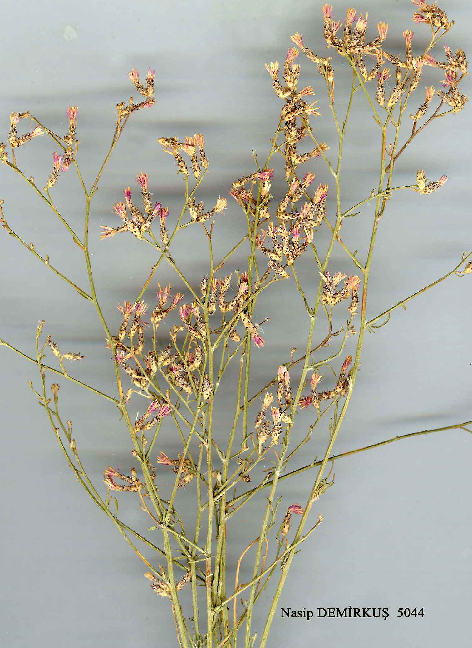 | C. virgata Lam., Encycl. 1:670 (1785). Syn: see below. Perennial with woody base and several stems (20-)30-70 cm, profusely branched with rigid spreading branches. Leaves arachnoid to thinly tomentose; lower (2-)pinnatipartite (withered at flowering time), median pinnatipartite with few distant linear segments l-2(-3) mm broad, upper simple. Capitula single or often two together at end of branches, mostly deciduous after flowering. Involucre 7-9 x 3-4 mm, fusiform. Appendages small (basal part of phyllaries visible), usually straw-coloured with large purplish-brown spots, mostly spreading or reflexed, with 5-10 cilia (1-2 mm) on each side, ending in a 0.5-2 mm mucro. Flowers (rose-)purple, marginal scarcely radiant, hermaphrodite flowers 4-8(-10). Achenes 3-3.8 mm; pappus 0.5-3.5 mm or absent. Fl. 6-9. Dry hills, steppe, dry waste ground, 100-2000 m. Described from cultivated plants, seeds collected 'dans l'Arménie' by A. Michaux (holo. P, photo!). Widespread, especially in Inner Anatolia. A variable species which for the area under study has provisionally been divided into 4 informal groups ('variants') in an earlier publication (Willdenowia 6:484, 1972). 1. Terminal mucro 0.5-1 mm, straight Group B 1. Terminal mucro longer, (1-)1.5-2.5 mm, curved or reflexed 2. Pappus absent or very short (-0.5 mm), (7-)8-10 cilia on each side of appendage Group C 2. Pappus longer, 5-8(-9) cilia on each side of appendage 3. Pappus (0.5-) 1-2 mm, capitula closed at fruiting time Group A 3. Pappus (2-)2.5-3.5 mm, capitula ± open at fruiting time Group D Group A. Syn: C. squarrosa Willd., Sp. Pl. 3(3): 2319 (1803), nom. illegit. (non C. squarrosa Roth); C. virgata Lam. var. squarrosa Boiss., Fl. Or. 3:651 (1875)! C. virgata Lam. subsp. squarrosa Gugler in Ann. Hist.-Nat. Mus. Hung. 6:248 (1907/8)! C. squarrosa Willd. var. colensis C.Koch in Linnaea 24:434 (1851)! G. squarrosa Willd. var. rubella Schultz Bip. in Exsicc. Th. Kotschy, Pl. Alepp. Kurd. Moss. no. 303 (1843)! Ic: Prodan, Centaur. Roman. t. 33a (1930). Figure 20, p. 487. Mainly Inner Anatolia. A2(A) Bilecik: Bilecik, on the way to Yenişehir, Dingier 178! A3 Bolu: N. of Bolu, 810 m, Wagenitz & Beug 117! A5 Tokat: nr Zile, 1200-1500 m, Borum. 1889:1119! A7 Gümüşane: Taltaban, Sint. 1894: 7407c! A8 Gümüşane: Colas nr Bayburt, Bourgeau 133! A9 Kars: below Kağizman, 1300 m, D. 46838! B3 Konya: Sultan Da., nr Akşehir, 1000 m, Bornm. 1899:5205! B4 Ankara: 10 km from Koçhisar at Tuz G., Rech. 15282! B5 Nevşehir: Ürgüp, 1250 m, Sorger 70-37-13! B6 Sivas: nr Deliktaş, 1400 m, M.&D.Zohary 3600! B7 Erzincan: S.E. of Mecidiyeköy, S. of Sipikör Da., 1900 m, Demiriz 5951! B8 Muş: Murat valley, 26 km from Muş to Varto, 1420 m, D. 46095! B9 Van: Edremit, 2000 m, D. 22649! B10 Ağri: 7 km N. of Doğubayazit, 1510 m, Buttler 14425! C2 Denizli: nr the ruins of Pamukkale, Alava 5292, Bocquet! C4 Konya: Konya to Çumra, 980 m, Helbaek 2620! C5 Niğde: Madenköy, 1670 m, Spitz. 156! B/C6 Maraş: W. foot of Nuruhak Da., D. 20448! C10 Hakkari: Yüksekova, 1950 m, Duncan & Tail 186! Group B. (C. virgata Lam. sensu stricto) N.W. & Inner Anatolia. A2(A) Bilecik: Bilecik, Dingier 251! A3 Adapazari: Geyve, 100 m, D. 36295! B3 Konya: Sultan Da. nr Akşehir, 1000 m, Bornm. 1899:5203! C6 Gaziantep: Gaziantep, 650 m, 20 vi 1865, Hausskn.! Malatya: 9 km N.E. of Gölbaşi, 850 m, Sorger 71-42-1! B7 Sivas: 8 km N.E. of Divriği, 1200 m, Sorger 70-31-7! Erzincan: S.E. of Cirzini, 1400-1500 m, Demiriz 5805! Group C. Mainly Inner Anatolia. A2(A) Istanbul: Fenerbagtche (Fenerbahçe), 23 vi 1916, Azn.! A4Çankiri: Çankiri, 800m, Bornm. 1929:14314! Ankara: nr Kalecik, 700-800 m, Bornm. 1929:14312! A5 Kastamonu: Tosya, Karvak Tschesme, Sint. 1892:4524! B2/3 Kütahya: Hantaşi boğazi, Leblebici & Ersoy (EGE 6318)! B4 Ankara: Beynam, D. 13014! Konya: Cihanbeyli to Ankara, 32 km from Kulu, 1000 m, Dudley (D. 35961)! C2 Denizli: Tavas to Denizli, 800-900 m, Dudley (D. 35560b)! C3(?) Konya: 7 km N. of Bademli, 1450 m, Spitz. 18! Group D. E. Anatolia. A7 Gümüşane: Kurdomer, Sint. 1894:7407! B8 Muş: Muş, C. Koch 2099! Distribution of species: Bulgaria, Lebanon, Anti-Lebenon, Transcaucasia, N. Iraq, Iran, Afghanistan, Turkestan. Ir.-Tur. element, and often a leading species. Most of the specimens outside Turkey seem to belong to Group A. In Turkey intermediates between different groups are not rare. Moreover, Group C is connected by a few mtermediate specimens with C. calolepis Boiss., e.g. C3 Konya: Suberde nr Seydişehir, Bordaz 15! |