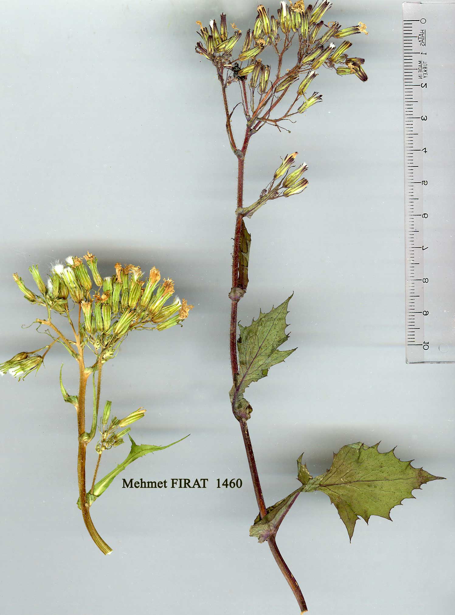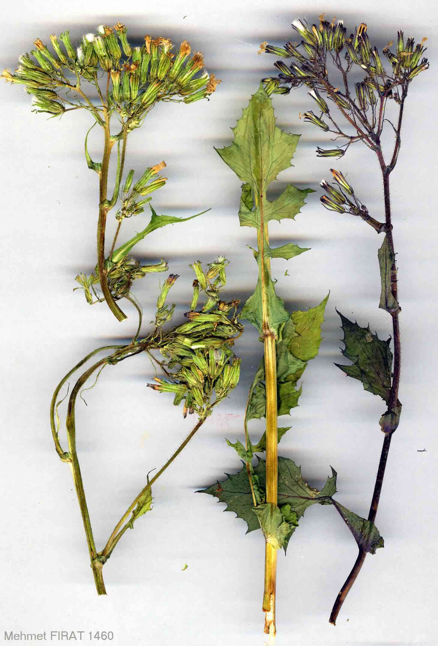 | C. rechingeranus Tuisl in Ann. Nat. Hofmus. Wien 72:614 (1968). Syn: Lactuca microcephala sensu Náb. in Publ. Fac. Sci. Univ. Masaryk Brno 52:54 (1925) non DC. (1838). Map 65, p. 769. Perennial with tuberous rhizome. Stems erect, strongly glandular-setose except at base. Leaves membranous, ± glandular-setulose especially on midribs beneath, lyrate-pinnatisect, sinuate-dentate, basal and lower cauline with 6-8 lateral lobes, 10.5-18 x 3-6.5 cm, with petioloid base; median smaller with fewer lateral lobes and rounded subentire or sinuate-dentate auricles. Inflorescence corymbiform, many-capitulate; pedicels glandular-setose, bracts glandular-setose on midribs and margins or glabrous. Involucre 8.5-11.5 mm; phyllaries 15-17, glabrous or with a few glandular setae near apex. Flowers pale yellow, c. 1 cm, long-hairy about mouth. Achenes 6-7 mm, dark brown, fusiform, little compressed, with several rounded ribs and slender pallid 2-2.2 mm beak. Pappus white, inner 4-4.5. mm, strongly barbellate (subplumose),outer 0.2 mm. Fl. 6-7.Rocky slopes, 1800-2600 m. Described from N. Iraq, Rechinger 10386a (holo. W). S.E. Anatolia. B9 Bitlis: Pelli Da., above Pelli, 2600 m, D. 22474! C7 Urfa: [nr Birecik], Sint. 1888:1027 p.p.! C8 Mardin: Bakakri, Sint. 1888:1275! C9 Hakkari: above Hasitha, Maidanoke, 1900 m, Nábělek 3848! N. Iraq, N.W. Iran. Ir.-Tur. element. |