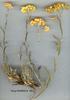 | H. arenarium (L.) Moench, Meth. 575 (1794). Syn: Gnaphalium arenarium L., Sp. PL 854 (1753). Plant grey-adpressed-tomentose, eglandular. Flowering stems 9-46 cm, arising from short stout branched caudices. Sterile shoots with prominently swollen leaf-bases. Basal leaves often crowded, linear-oblanceolate to spathulate, 7-60x1∙5-8 mm; cauline ones narrowing to linear above; sometimes with crisply undulate margin. Capitula numerous, subglobose. Phyllaries ± flat or cucullate, yellow (rarely straw-coloured) or apricot. All flowers hermaphrodite. Fl. 5-8. Dry calcareous or sandy soils; steppe, banks, 250-3200 m. 1. Phyllaries cucullate, apricot, yellow or straw-coloured subsp. rubicundum 1. Phyllaries flat, yellow 2. Leaves undulate; basal leaves 7-20 x 1∙5-4 mm subsp. erzincanicum 2. Leaves not undulate; basal leaves 10-50 x2-8 mm subsp. aucheri subsp. rubicundum (C. Koch) Davis & Kupicha in Notes R.B.G. Edinb. 33:239 (1974). Syn: Antennaria rubicunda C. Koch in Linnaea 17:49 (1843); Helichrysum undulalum Ledeb., Fl. Ross. 2:606 (1845)! H. arenarium (L.) Moench var. plinthocalyx C. Koch in Linnaea 24:348 (1851); if. arenarium wax. rosea Trautv. in Acta Horti Petrop. 1:23 (1871); H. rubicundum (C. Koch) Bornm. in Bull. Herb. Boiss. ser. 2, 7:34 (1907); H. undulatum Ledeb. subsp. rubicundum (C. Koch) Takht. in Takht. & Fedorov, Fl. Erevana 283 (1972). Figure 5, p. 87. Map 11, p. 91. Described from Armenia. E. Anatolia. A9 Kars: Kars to Selim, 1800 m, D. 30662 (ABb)! A/B9 Kars: Iğdir to Tuzluca, 1080 m, M.Zohary & Plitm. 2266-3 (Ab)! B7 Malatya: 3 km E. of Malatya, 920-950 m, Hub.-Mor. 9464 (Ab)! B9 Ağri: nr Diyadin, 1065-1220 m, Hewitt 182 (Ab)! Van: d. Başkale, ispiriz Da., 3200 m, D. 23773 (aB)! Kars: Aralik to Takjaltu, B.Post 2027 (ab)! B10 Ağri: Doğubayazit to Iğdir, 1620 m, M.Zohary & Plitm. 2264-47 (AB)! Kars: Araş valley, 800 m, D. 43818 (AB)! Caucasia, N.W. Iran. Ir.-Tur. element. Within subsp. rubicundum there is variation in both degree of leaf-undulation and phyllary colour. In the preceding specimens, leaves with wavy margins are shown by 'A', straight by 'a'; apricot capitula are shown by 'B', yellow or straw-coloured by 'b'. |