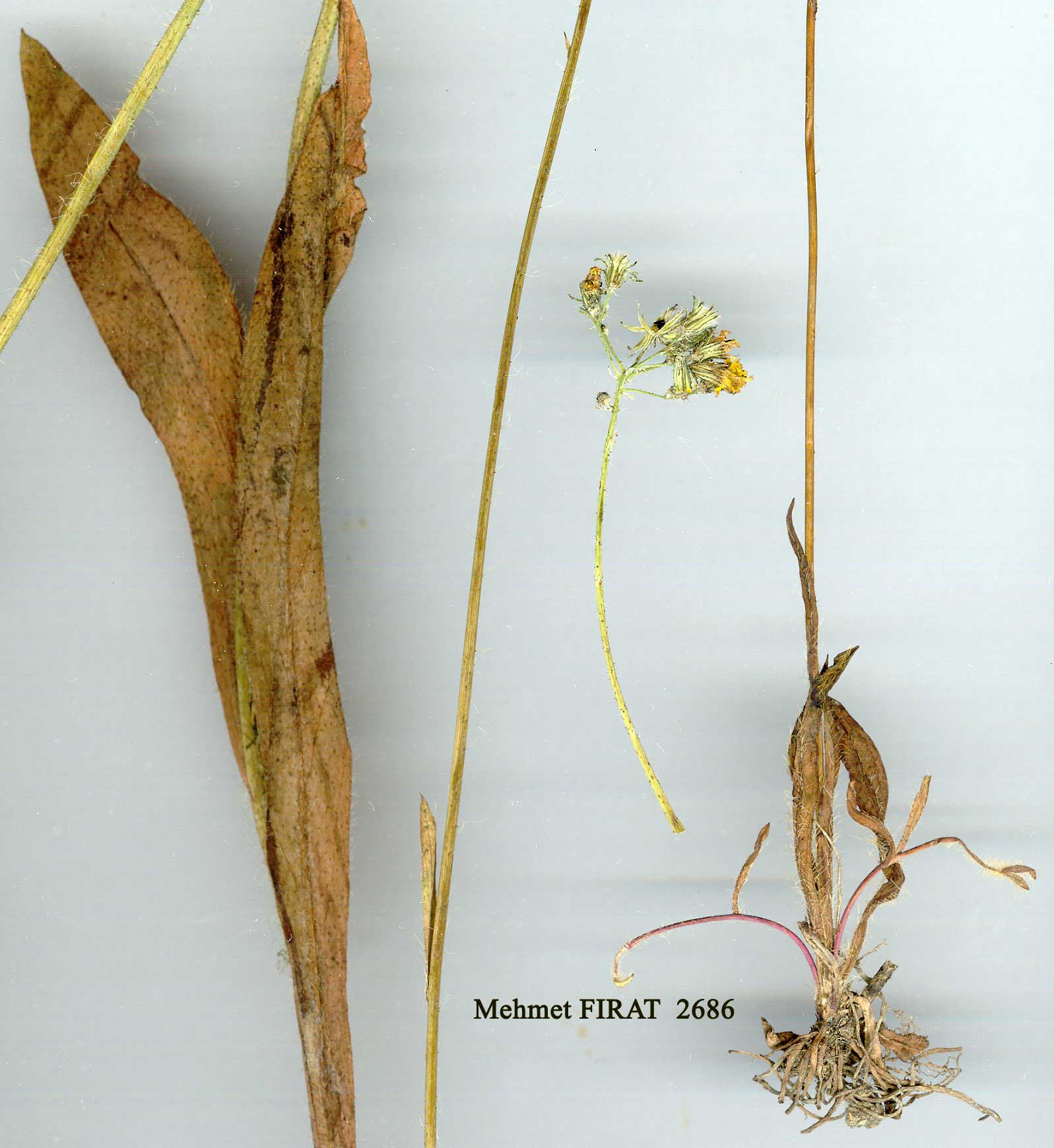 | P. x auriculoides (A. F. Lang) Sell & West in Notes R.B.G. Edinb. 33:432 (1975). (P. echioides x piloselloides). Syn: Hieracium auriculoides A.F.Lang, Syll. PI. Nov. Ratisb. 1:183 (1824); H. sarmentosum Froelich in DC, Prodr. 7(l):202 (1838), non Salisb. (1796); H. calodon NP. subsp. sphaleron NP., op. cit. 745; H. calodon subsp. psammophilum NP., op. cit. 1511; H. pannonicum NP., op. cit. 749, nom. superfl. illegit. pro H. auriculoides A.F.Lang; H. pannonicum subsp. praecox Tausch ex NP., op. cit. 751; H. pannonicum subsp. bourgeaui NP., op. cit. 758; H. sintenisii Freyn f. eginense Freyn & Sint. in Öst. Bot. Zeitschr. 42:270 (1892)! H. procerigenum Litw. & Zahn in Feddes Rep. 4:192 (1907); H. auriculoides subsp. semipraecox Zahn in Ann. Mus. Hung. 8:57 (1910), nom. superfl. illegit. pro H. pannonicum subsp. praecox Tausch ex NP.; H. auriculoides subsp. semiauriculoides Zahn in Feddes Rep. 16:182 (1919); H. calodon subsp. tyrrhanum Zahn in Engler, Pflanzenreich 82 (IV.280):1512 (1923)! H. auriculoides subsp. calviscapum Zahn, op. cit. 1516; H. auriculoides subsp. nudescens (NP.) Zahn, loc. cit.; H. auriculoides subsp. berdakense Zahn, op. cit. 1517; H. auriculoides subsp. elmalynum Zahn, loc. cit.; H. auriculoides subsp. leiocauloides Zahn, loc. cit.! H. auriculoides subsp. sarmentosum Zahn, op. cit. 1519; H. auriculoides subsp, rubelliforme Zahn, op. cit. 1524; H. procerigenum subsp. chaetanthelum Zahn, op. cit. 1529! H. procerigenum subsp. chaetanthelum var. hirsutifolium Zahn, loc. cit.! H. procerigenum subsp. cryptochromum Bornm. & Zahn in Engler, Pflanzenreich 82 (IV.280): 1528 (1923); H. procerigenum subsp. cryptochromum var. longistuppatum Bornm. & Zahn, op. cit. 1529! H. psammophilum (NP.) Juxip in Fl. URSS 30:483 (1960); H. echiogenes (NP.) Juxip, op. cit. 487; H. longisetum (NP.) Juxip, op. cit. 488; H. semipraecox (Zahn) Juxip, op. cit. 492; H. echiocephalum (NP.) Juxip, op. cit. 494; H. thracicum (NP.) Juxip, op. cit. 498; H. tanythrix (NP.) Juxip, op. cit. 500. Ic: Fl. RPR 10: t. 68 f. 2 (1965). Very variable. Usually differs from P. echioides in its glaucous, less hairy leaves and smaller capitula, and from P. piloselloides in being more hairy throughout. Fl. 5-8. Clearings in Quercus and Pinus forest, pastures, hillsides, rocky slopes and scrub, 90-2450 m. Described from Bohemia. Throughout Anatolia, Islands. A1(E) Çanakkale: 1 km N.E. of Behramli, Bauer, Fitz & Spitz. 3181! A1(A) Çanakkale: Dardanelles, Sint. 1883:200! A2(E) Istanbul: Belgrad Ormani, 90 m, Balls 2390! A2(A) Bursa: Ulu Da., Kirazli Y., 1600 m, Simon 69-284! A3 Zonguldak;Zonguldak to Gerede, Walter 4836! A4 Çankiri: Kücük Ilgaz Da., 1700-1750 m, Hub.-Mor. 17343! A5 Çorum: 40 km E. of Çorum, Jardine 399! A6 Sivas: d. Zara, Serefiye Y., 1500-1530 m, Hub.-Mor. 16394! A7 Giresun: 10 km N.W. of Şebinkarahisar, 1300 m, Sorger 69-31-5! A8 Çoruh: above Artvin, 940 m, M.Zohary & Plitm. 2561-40! A9 Kars: nr Sarikamiş, c. 2200 m, Oğuz (EGE 6350)! Bl Izmir: Smyrna (Izmir), 27 v 1854, Bal. 405! B2 Uşak: 13 km from Dumlupinar to Banaz, c. 1000 m, Coode & Jones 2371! B3 Afyon: Emir Da., Asar Beli E. of Çoğu, 10 vi 1942, Romieux! B4 Ankara: Beynam Ormani, Akman 325! B5 Kayseri: Erciyas Da., 1700 mM.Zohary & Plitm. 1762-35! B6 Sivas: 20 km W. of Divriği, 1500 m, Sorger 69-44-18! B7 Erzincan: Egin (Kemaliye), Demergoep (Gemergöp), Sint. 1890: 2596a (lectotype of H. eginense)! B9 Van: d. Çatak, Kavuşşahap Da., 2440 m, D. 23035! C1 Izmir: Bülbül Da. above Efes, 400 m, Hub.-Mor. 17610! C2 Burdur: 7 km from Yeşilova to Denizli, 1100 m, Dudley (D. 35302)! C3 Konya: 17 km from Beyşehir to Konya, 1120 m, Hub.-Mor. 16408! C4 Içel: nr Gülnar, 950-980 m, Hub.-Mor. 16412! C5 Adana: Koca Çukur Y. above Pozanti, 1750 m, Hub.-Mor. 16420! Ç6 Gaziantep: Fevzipaşa pass 74 km S. of Maraş, 1150 m, Sorger 71-37-1! Is: Khios, Platt 557; Samos, Rech. 1938. C. & S.E. Europe, S. Russia, Gaucasia, Syria, Lebanon, N. Iran. Hieracium megatrichum Borbas subsp. akscheherense Bornm. & Zahn (in Engler, Pflanzen-reich 82 (IV.280): 1527, 1923), which is based on a gathering of Bornmüller (B3 Konya: Sultan Da. above Akşehir, 1200 m, Bornm. 5248, p.p.), is supposed to be a triple hybrid, P. cymosa x echioides x piloselloides. This may be true, but it could possibly be part of the variation of the P. echioides x piloselloides hybrid complex. Hieracium borckae Ponert (in Feddes Rep. 86:39-41, 1975) probably also belongs to this complex. |