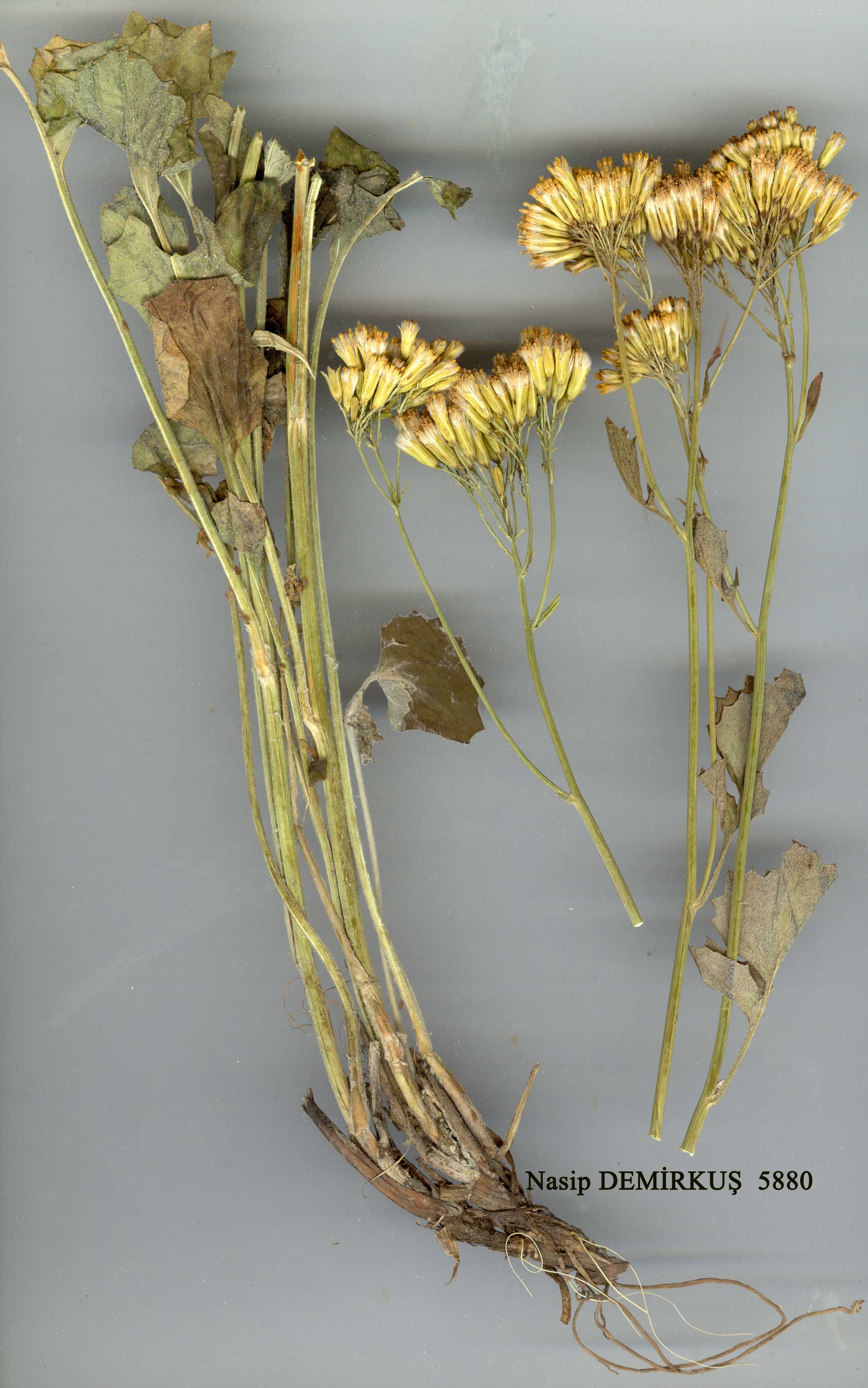 | S. paucilobus DC, Prodr. 6:352 (1838). Floccose perennial with stems 30-70 cm. Leaves petiolate, pinnatisect, lobes usually dentate, terminal lobe cordate, lateral lobes usually 1-2-paired, distant. Capitula discoid, few-flowered, 0.3-0.5 cm broad, numerous in a compound corymb. Phyllaries 6-8 mm, lanceolate, acuminate, glabrous. Calycular bracts 1-2 mm. Achenes 2.5-3 mm, glabrous. Pappus 6-7 mm, whitish. Fl. 7-8. Damp places, rocky slopes, 2285-2600 m. Syntypes: in itinere á Persia ad Indiam, Belanger; [Iran] ad Zerdkou, Aucher [3442] (K! BM!). S.E. Anatolia. B9 Van: roadside, 2285 m, Tong 335! 15 km N. of Çatak, D. 23152! Hoşap to Başkale, c. 2600 m, Birand & Karamanoğlu 484! N. Iraq, Iran. Ir.-Tur. element. |