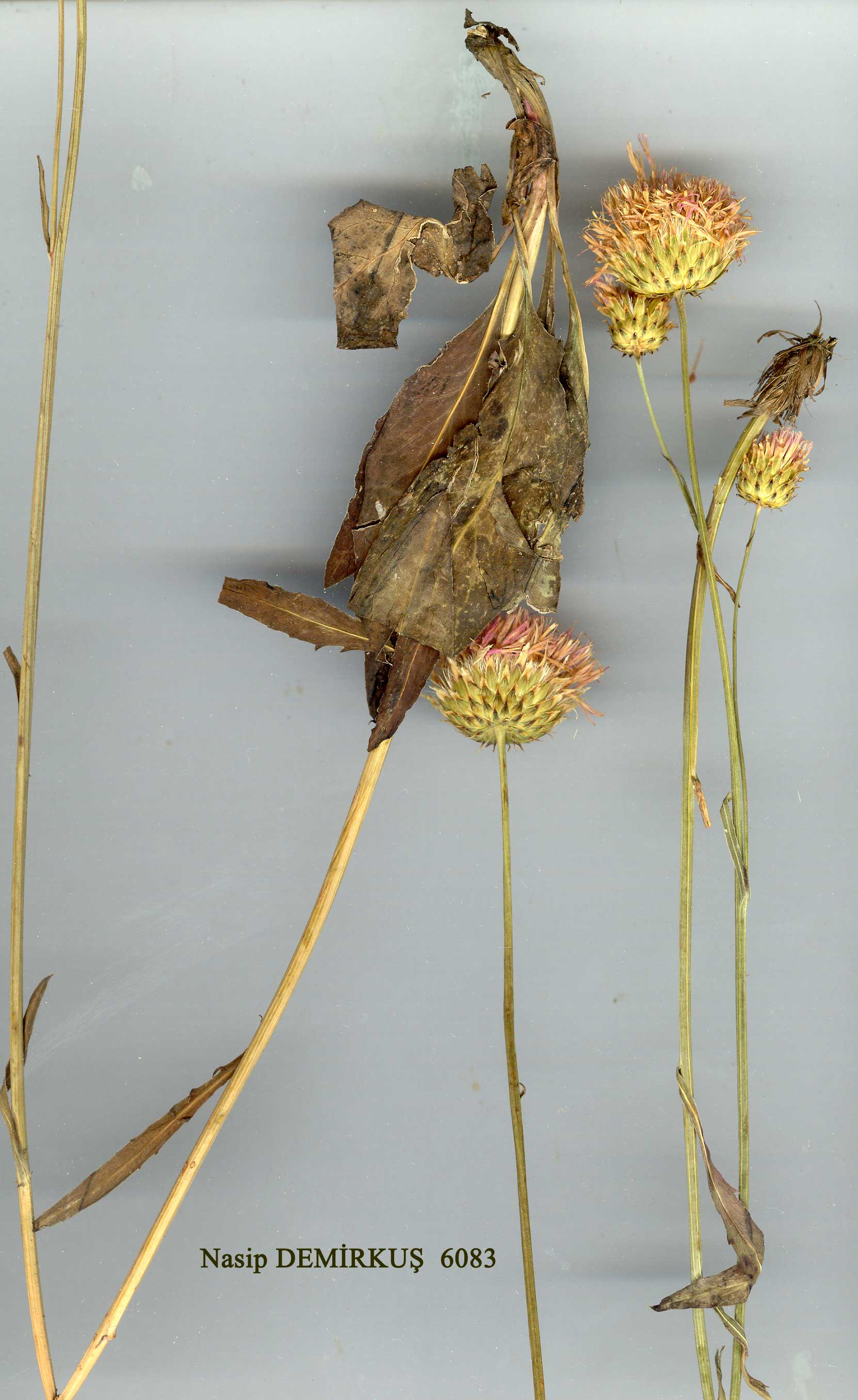 | S. haussknechtii Boiss., Fl. Or. 3:589 (1875). Syn: S. nudicaulis (L.) DC. subsp. haussknechtii (Boiss.) Bornm. var. transcaucasica Bornm. in Monit. Jard. Bot. Tiflis 32:2 (1914); S. transcaucasica (Bornm.) Sosn. ex Grossh., Fl. Kavk. 4:194 (1934); Centaurea albinervis Parsa in Kew Bull. 1948:201 (1949)! Ic: Fl. URSS 28: t. 14 f. 3 (1963) as S. transcaucasica. Map 51, p. 457. Plant 20-30 cm, very sparsely villous. Stems erect, usually simple, rarely branched, leafy below, arising from horizontal rhizome sheathed in fibrous remains of dead shoots. Leaves lanceolate-petiolate, 6-7 x 0.6-1.4 cm, entire or with few remote teeth, margins crispate-pubescent. Capitula borne on long leafless peduncles. Involucre cup-shaped, c. 15 x20 mm; phyllaries c. 5-seriate, ovate-acuminate, with scarious straw-coloured margin, central area greenish with darker tip. Flowers mauvish-pink, exceeding involucre. Achenes c. 5 x 1.5 mm. Pappus of barbellate hairs c. 6 mm. Fl. 7. Mountain steppe, 1780-2800 m. Lectotype: [W. Iran] in montibus Avroman et Schahu Kurdistaniae Persicae, 3050 m, Haussknecht (K!). Easternmost Anatolia. A9 Kars: 11 km from Kars to Selim, 1780 m, Hub.-Mor. 15854! B9 Van: Güzel De. pass, 34 km from Başkale to Hoşap, 2800 m, D. 45950! N. Iran, Caucasia. Ir.-Tur. element. Hub.-Mor. 15854 is very unusual within this species in having branched stems, but in all other characters is typical of S. haussknechtii which is rather variable in the size and form of its capitula and phyllaries. Closely allied to the S. W. European S. nudicaulis (L.) D C., and perhaps conspecific. |