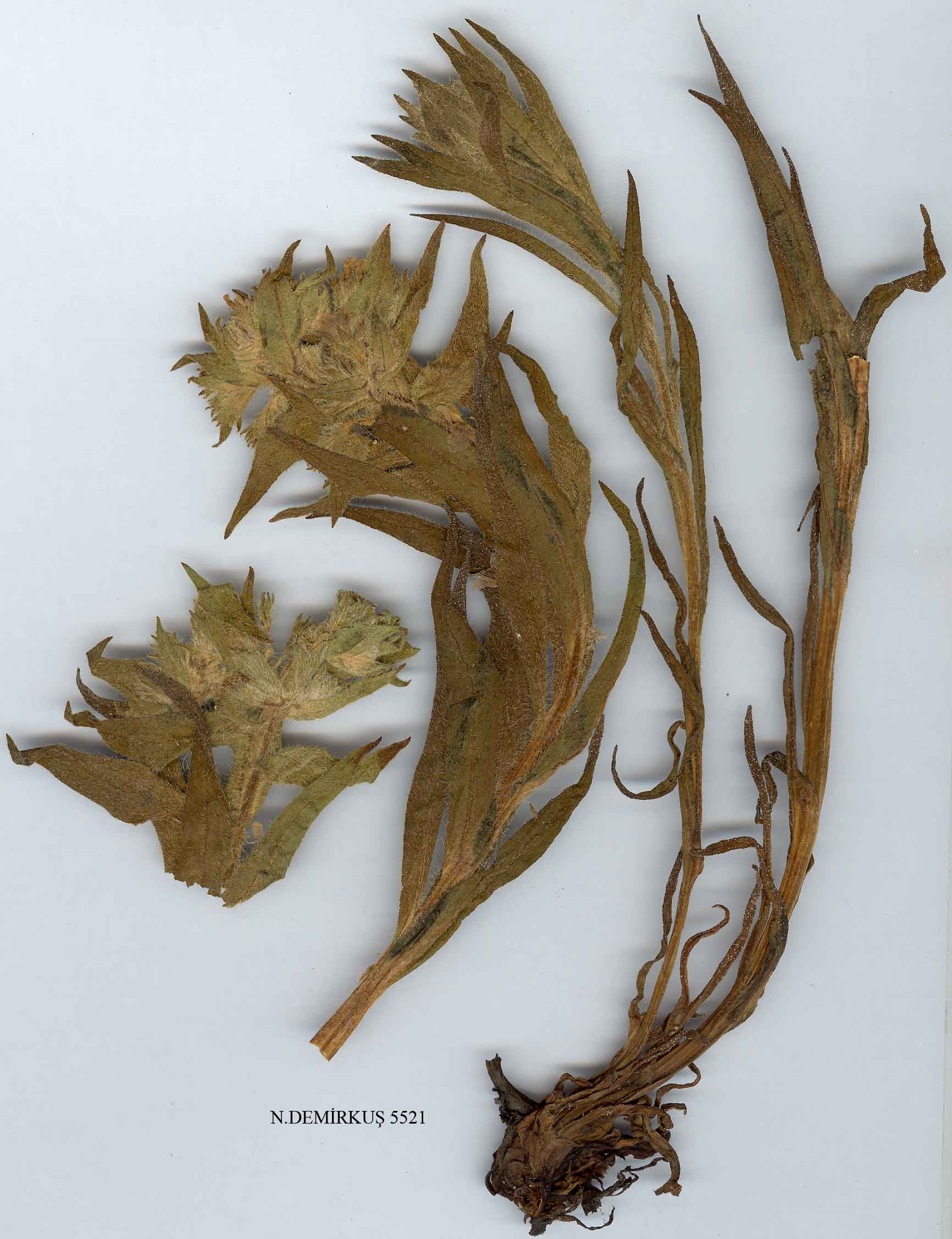 numerous, spreading, 1-3 mm, tuberculate at base, ± without intermediates between short pubeseent and longer setiform hairs. Basal-leaves linear-lanceolate with entire margins, 6-20x0.7-2 cm; cauline lanceolate to elliptic, 4-8 x 1-2 cm. Cymes 10-25 cm in fruit. Bracts lanceolate to ovate, 1-6x0.5-2.5 cm. Calyx 8-10 mm in flower, 13-15 mm in fruit, densely covered with setiformhairs. Corolla yellow, glabrous outside, 10-20 mm, limb 5-8 mm diam. Nutlets 4-6 mm diam., scrobiculate-reticulate; beak strongly deflexed. Fl. 5-7. Fields, rocky slopes, steppe, Quercus scrub, 1000-2500 m. Type: [Turkey B9 Siirt] Südseite des Passes Aghzi Gedik, 10 km nördlich von Mukus, 2500 m, 24 vi 1939, Frödin 147 (holo. W! İso. UPS). , E. Anatolia. B7 Erzincan: Çağlayan, 1700 m, Karamanoğlu 66-38! Tunceli: 16 km N. of Tunceli, 1000 m, Hub.-Mor. 11060! B8 Siirt: Halkis Da. above Şeyhan W. of Sason, 1000-1500 m, Watson et al. 1204(!). B9 Bitlis: 5-8 km N.W. of Tatvan, 1800 m, D. 43353! Van: 5 km W. of Gevaş, 1670 m, Hub.-Mor. 11055! C9 Hakkari: Çukurca, 1300 m, 22 v 1966, Eiselt(!). Endemic. Ir.-Tur. element. Related to A. cordifolia. |