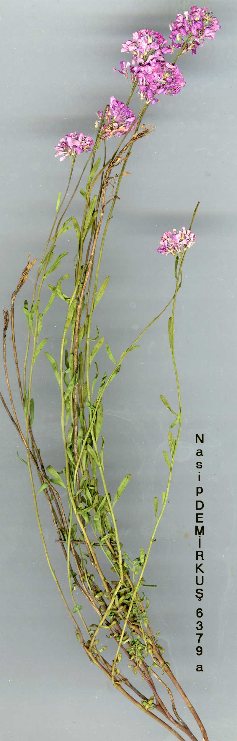 | Ae. grandiflorum Boiss. & Hohen. in Boiss., Diagn. ser. 1(8): 42 (1849). Syn: Ae. pulchellum Boiss. & Huet in Boiss., Diagn. ser. 2(5): 43 (1856). Many-stemmed perennial herb with simple or branched flowering stems, 15-30 cm. Leaves narrow, linear-oblong, sessile, evenly covering the stem. Petals pink 5-11 x 3.5 mm, blade and claw distinct or not, blade 3-nerved. Filaments not or scarcely connate, slightly dilated, not dentate. Inflorescence loosely racemose, elongating in fruit. Ovary bilocular, loculi 1-ovulate. Fruiting pedicels suberect, 3-4 mm. Siliculae ovate or orbicular, flat or slightly cymbiform, 8-10 x 10-12 mm; wings 2-3 mm entire or slightly erose-dentate; sinus 3-4 mm; style subsessile; septum 3.5-5 x 2.5 mm. Seeds 1-2. Fl. 5-6. Dry rocky slopes, c. 1000-3000 m. Type: Iran, in fauce Schirdere montis Elburs, Kotschy 181 (E!). E. Anatolia. A8 Erzurum: Horasan to Karaurgan, 2000 m, D. 29495! A9 Erzurum: Pasinler to Horasan, 1650 m, D. 29411! B7 Tunceli: above Pülümür, 1850 m, D. 29291! Malatya: Malatya to Pütürge, 1730 m, Hub.-Mor. 9248! Erzincan: Egin (Kemaliye), Sint. 1890: 2377! B9 Bitlis: Pelli Da., 3050 m, D. 22474! Bitlis/Van: mountain 10 km SE of Pelli, 2440 m, D. 22594! C6 Gaziantep: Dülük Baba, 1100 m, D. 28043! Malatya: Erhenek, 1400 m, Balls 2311! Transcaucasia, Iraq & Iran. Ir.-Tur. element. Widespread and very common in eastern Turkey. Very variable in all its characters and apparently consisting of innumerable interconnected local forms. Although the two species Ae. grandiflorum and Ae. pulchellum have usually been kept as separate species, many authors (e.g. Bornmüller, Blakelock) have remarked that there are transitions between them. On the basis of the abundant Turkish material, there is no justi fıcation in maintaining two separate taxa. Both petal size and shape are most variable and the larger-flowered taxon which is more common in Iran can apparently only be recognised in flower. |