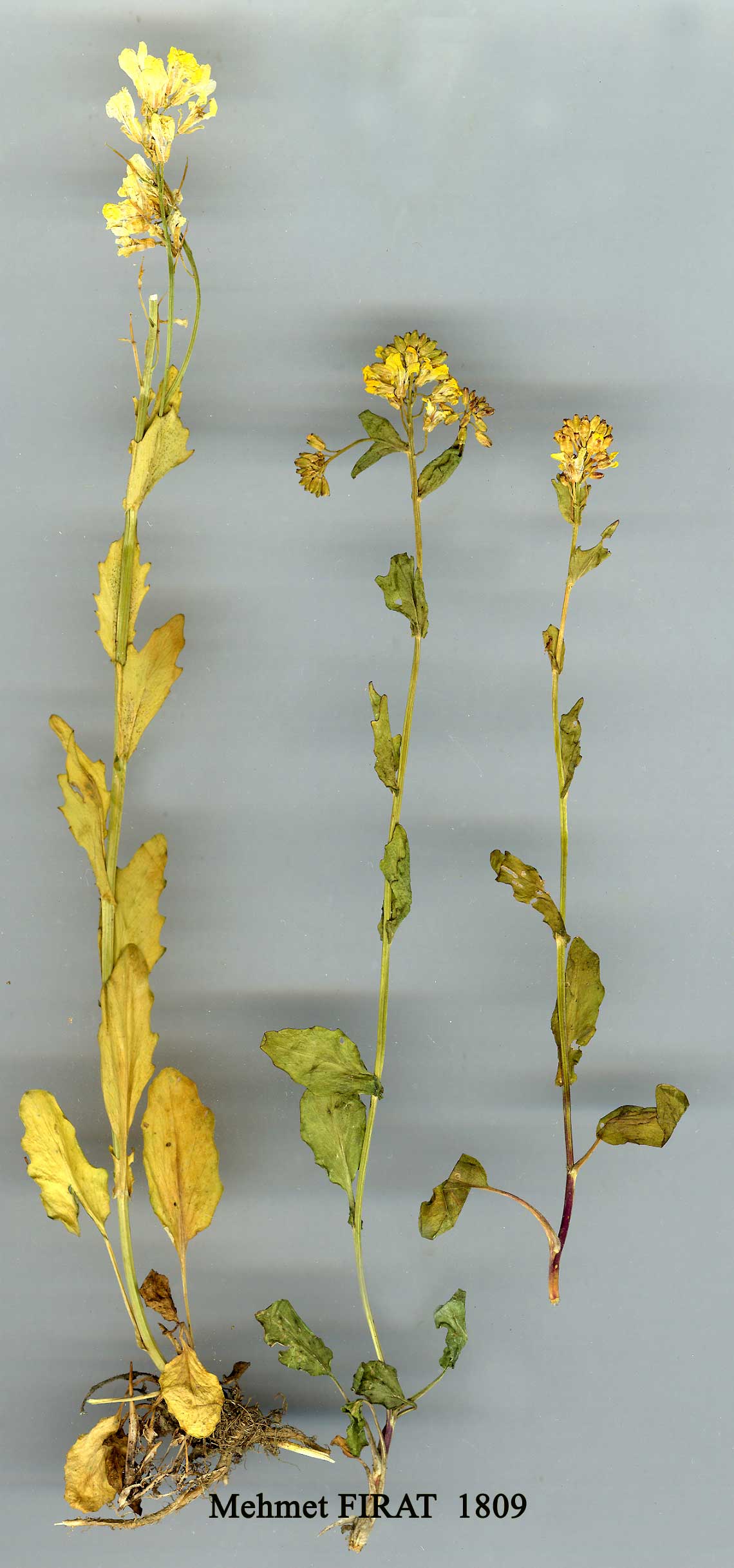 | B. minor C. Koch in Linnaea 19: 55 (1847). Usually small perennial herbs. Stems erect, usually glabrous, up to 30 cm, but often less than 10 cm. Basal leaves glabrous to pilose, long-petiolate, with 0-1 pairs of lateral leaflets, and a larger ovate-orbicular, usually toothed, terminal leaflet. Stem leaves oblong-amplexicaul, toothed, overlapping. Petals yellow, (5-)6-8 mm. Siliquae erect-spreading, compressed, not more than 1 mm broad. 3 intergrading varieties are recognisable in Turkey: 1. Lower leaves densely to sparsely pubescent var. eriopoda 1. Lower leaves glabrous 2. Plants delicate, up to 16 cm tall var. minor 2. Plants robust, 22-30 cm tall var. robusta var. robusta Cullen & Coode in Notes R.B.G. Edinb. 26: 190 (1965). Fl. 6-8. Stream sides, damp banks etc., 1400-3000 m. Type: Turkey B9 prov. Bitlis, Pelli, 2800 m, Davis & Polunin (D. 22396 -holo. E!). Kurdistan. Van: d. Gevas, Artos Da., 3000 m, D. 22858! C9 Hakkari: Cilo Tepe, 3000 m, D. 24087! Endemic; three specimens (B5 Kayseri: Bakir Da., 1700 m, D. 19483; C5 Içel: Gusgutathal, Siehe 1896: 243; C6 Hatay: Amanus, 1800 m, Haradj. 708) otherwise similar to this variety, have auricles similar to B. auriculata, from which they may be distinguished by their spreading, arcuate fruits. var. eriopoda Busch in Fl. Cauc. Crit. 3(4): 318(1909). Syn: B. brachycarpa Boiss., Diagn. ser. 1(5): 80 (1844). Fl. 4-6. Streamsides, wet meadows, 1100-2100 m. Many syntypes cited from the 'Little Caucasus' (Adzharo-Imeretinskiy Khr.). Scattered. A4 Kastamonu: Ilgaz Da., 2100 m, D. 21573! A/B4 Ankara: Küre Da., Brown 1297! A7 Gümüşane: Vareni Dagh, Sint. 1894: 5756b! A8 Erzurum: Erzurum to Ispir, 1800 m, vi 1853, Huet! A9 Kars: Kağizman, Aschikdash (Aşagi Dağ?), 3300 m, Satunin. Bl Balikesir: Ida (Kaz Da.), Sint. 1883: 936! Izmir: Yamanlar Da., 850 m, Hub.-Mor. 2800! B2 Kütahya: Murat Da., Bal. 1256! C5 Içel: Dombelek Da., 1900 m, Siehe 318! C6 Seyhan: Dumanli Da., nr. Bahçe, 1100 m, D. 26857! Little Caucasus. Records for B. longirostris Vel. from Turkey should probably be referred to this taxon. |