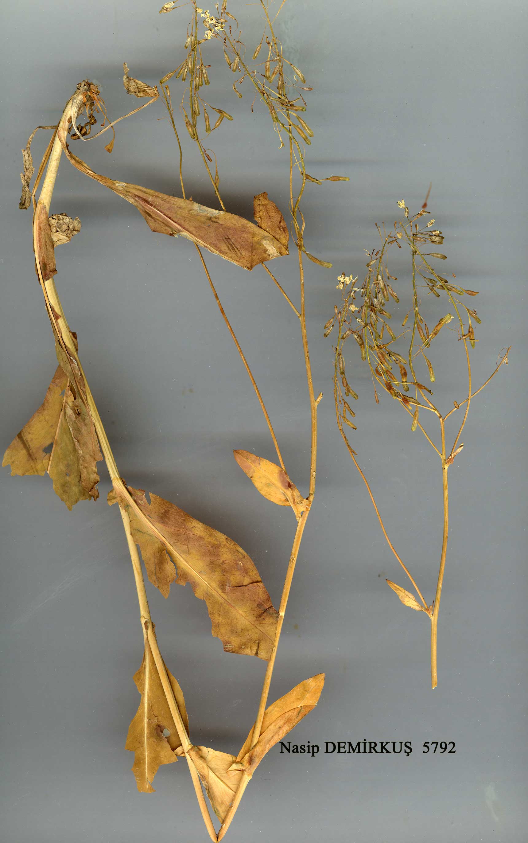 | I. cochlearis Boiss. in Ann. Sci. Nat., 17: 202 (1842). Figure 16, p. 293. Biennial. Stem 30-70 cm, glabrous or pilose below, corymbose-paniculate above. Leaves thin, pilose at least on the midrib below; basal leaves usually lobed and dentate; median stem leaves oblong-lanceolate, sparingly dentate or entire, with large rounded amplexicaul auricles. Flowers 4 mm. Fruit obovate to narrowly obovate-oblong, 6-12(-15) x 2-4 mm, shortly inflated below the loculus, glabrous, tomentose-pubescent (type) or villose at the loculus, dilated above the loculus into a concave obovate wing, loculus very narrowly thick-winged or nearly wingless, situated towards the base of the fruit, midrib thickening when ripe. Fl. 4-5. Shady limestone rocks and rocky slopes, 550-1800 m. Type: [Turkey C6 Adiyaman] Besnie, Aucher 211 (holo. G! iso. K!). Mesopotamia. B8 Bitlis: Kambos Da., above Hurmuz, 1800 m, D. 2343 (approaching I. guestii)! C6 Gaziantep: Fevzipaşa to Gaziantep, 550 m, Hub.-Mor. 13781! C8 Mardin: Mardin. Sint. 1888: 931! N. Iraq. Ir.-Tur. element. Very variable in the size and form of its fruits, possibly due to introgression with other species (e.g. I. buschiana). I. guestii Blakelock (Sect. Apterolobus, from N. Iraq) intergrades with I. cochlearis and may not be specifically distinct. |