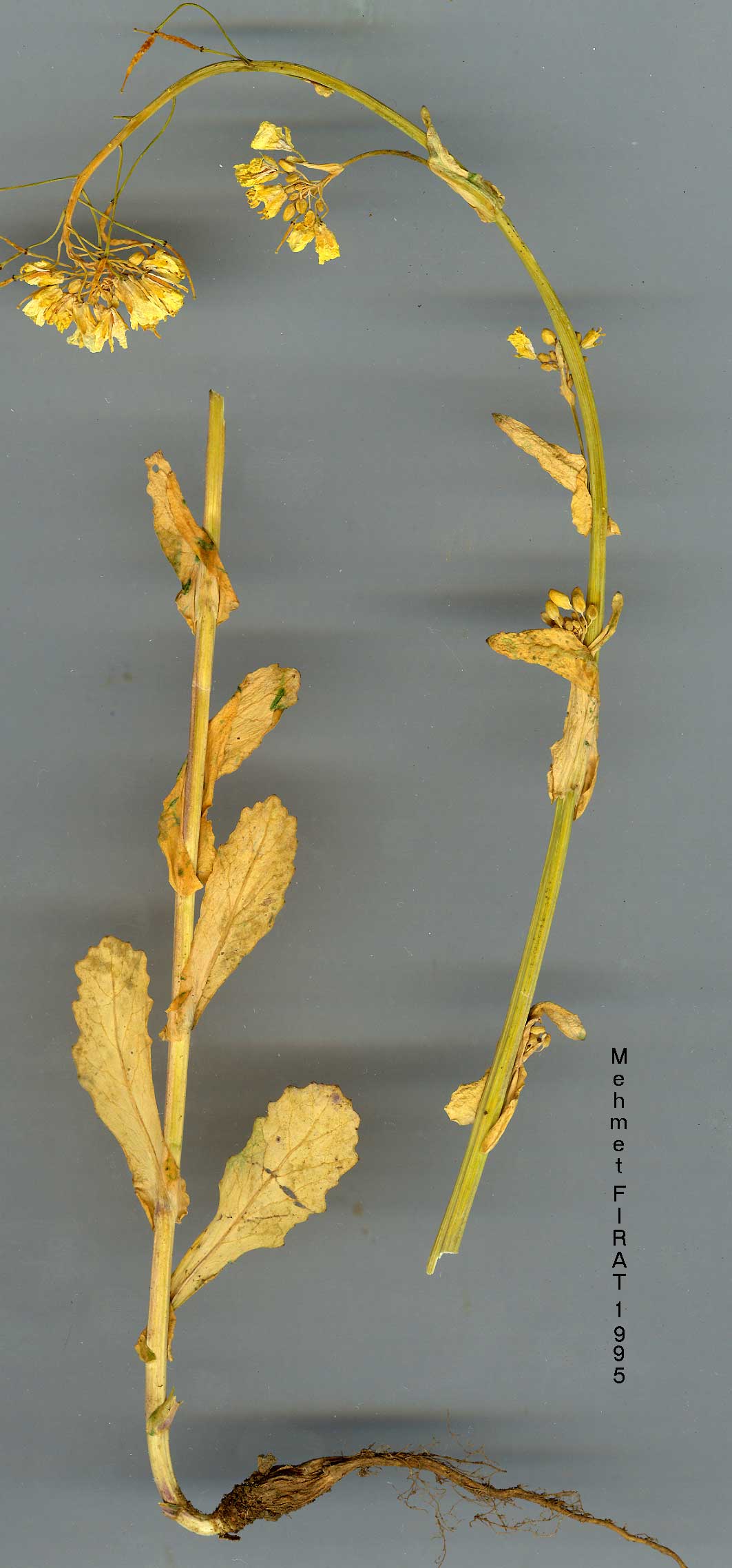 | R. raphanistrum L., Sp. PL 669 (1753). Ic.: Schulz, op. cit., f. 26. Ross-Craig, Draw. Brit. PL 3: 76 (1949). Figure 12, p. 255. Annual, usually branched from near base with erect branches 15-50 cm, ± hispid. Basal leaves not rosette-forming, lyrate, petiolate. Cauline leaves peti-olate; uppermost sessile, entire. Inflorescence loose before anthesis, greatly elongating in fruit. Petals 14-17 x 4-8 mm, white, pale rose, lilac or yellow, usually with dark veins that are rarely absent. Fruiting pedicels erect-ascending, 10-30 mm. Fruit 1.4-6.5 cm x 3-7 mm. Seeds usually reticulate. Fl. 3-5. Fallow fields, cultivated ground, sandy fields, s.1.-400 m. Described from Europe (Hb. Linn. 846/4 photo.!). Outer Anatolia, Islands. A1(E) Çanakkale: Gelibolu, Širjaev. A2(E) Istanbul: Rumeli-Hissar, 11 iv 1937, Post! A2(A) Istanbul: Kartal, 1 vi 1890, Azn.! A5 Sinop: Sinop, 15 m, Tobey 69! A7 Trabzon: Of, s.l., D. 32030! Bl Çanakkale: Troy (Troja), Calvert 540. C1 Muğla: d. Marmaris, Nimara Ada, Kiran et al. 74! C2 Aydin: Sultanhisar, 30 m, D. 25593! C3 Antalya: Alanya, 2 m, D. 25914! C5 Içel: Kuyuluk, 2m, D. 26513! C6 Hatay/Adana: Haruniye to Iskenderun, 200-400 m, Meincke. Urfa: Birecik, Sint. 1888: 558! Is.: Lesvos, Rech. 5924; Khios, Orphanides; Samos, Rech. 3990; Kalimnos, Gathorne-Hardy 345! Throughout Europe, N. Africa, S.W. & C. Asia. An extremely variable species. Although the two subspecies (often treated as species) listed below have been recorded from Turkey, they are probably based on misidentifications. The her-barium representation of Raphanus from Turkey is rather sparse and often inadequate, but the available specimens do not agree well with the European material. Subsp. maritimus (Smith) Thellung: short lived perennial or biennial. Siliquae 5-8 mm in diameter, petals 1.6-2.5 mm, beak 8-20 mm. Recorded from the Black Sea Coast (nr. Of, Grossheim 4: map 200). Subsp. landra (Moretti) Bannier & Layens: similar to the former but sometimes annual, petals 10-15 mm and beak 15-40 mm. The Anatolian material agrees best with the type sub-species (fruits 2-4 mm in diameter, 3-8 segments, beak 10-30 mm). More investigation is necessary. R. sativus L., the cultivated radish, is of unknown, but probably hybrid, origin. Widely grown in Anatolia and with innumerable cultivars, possibly hybridising with R. raphanistrum, it has a napiform root and a ± inflated fruit hardly constricted between the 5-12-seeds. Nowhere found wild but not infrequent as an escape from cultivation (C5 Içel: Mersin to Tarsus, D. 26541!). |