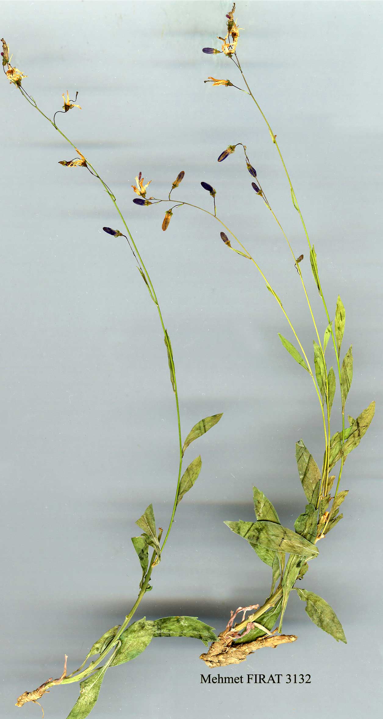 | A. amplexicaule (Willd.) Hand.-Mazz. in Ann. Nat. Hofmus. Wien 27:431 (1913). Glabrous perennial, rarely hairy at base or on leaves. Stems (20-)40-60(-70) cm, ± densely leafy, simple, erect, slightly sulcate. Lower cauline leaves petiolate; middle cauline largest, petiolate or sessile-amplexicaul, ovate with cordate base to broadly lanceolate, acute, serrate or rarely biserrate. Inflorescence lax in lower part, ± branched, in upper part a ± dense spike. Flowers in dense clusters of 10-20, erect. Pedicels filiform, 1-3 mm, glabrous. Calyx lobes subulate, glabrous, erect, 1-2 x 0.3-0.45 mm. Corolla lobes glabrous, 8-12 x 0.8-1.2 mm. Stigmas (2-)3(-4). Capsule ovoid-ellipsoid, 3-4 x 3.5-5 mm, opening by 3 pores slightly above middle. Seeds ellipsoid, ± flattened, 2 x 1 mm, light brown, shiny. 2/7 = 34. 1. Lower and middle cauline leaves petiolate, Slightly dentate to entire, often with cuneate base subsp. aucheri 1. Only lower cauline leaves petiolate, others sessile, ± amplexicaul usually sharply serrate, with cordate or cuneate base subsp. amplexicaule subsp. aucheri (A.DC.) Bornm. in Beih. Bot. Centr. 38(2): 339 (1921). Syn: Phyteuma aucheri A.DC. in DC, Prodr. 7:456 (1839)! Podanthum amplexicaule (Willd.) Boiss. var. aucheri (A.DC.) Bornm. in Beih. Bot. Centr. 20(2): 177 (1906). Ic: Boissiera 17: f. 20 (1970). Fl. 7-8. Rocky slopes, 1800-2430 m. Type: [Iran] in Persiae montibus, 1836, Aucher 3174 (holo. G!). S.E.Anatolia. B9 Bitlis: 4 km W. of Reşadiye, 1800 m, D. 46050! C9 Hakkari: Cilo Da., above Diz De., 2430 m, D. 23988! N. & W. Iran, N. Iraq, Caucasia. Ir.-Tur. element. A. amplexicaule is very polymorphic in vegetative characters, especially in the form of the cauline leaves. Closely related to the A. argutum group in C. Asia and A. fi/ipes from S.E. Anatolia and N. Iraq. All these species resemble in habit some Phyteuma species from C. Europe, but differ in chromosome number (when known), floral morphology and seeds. |