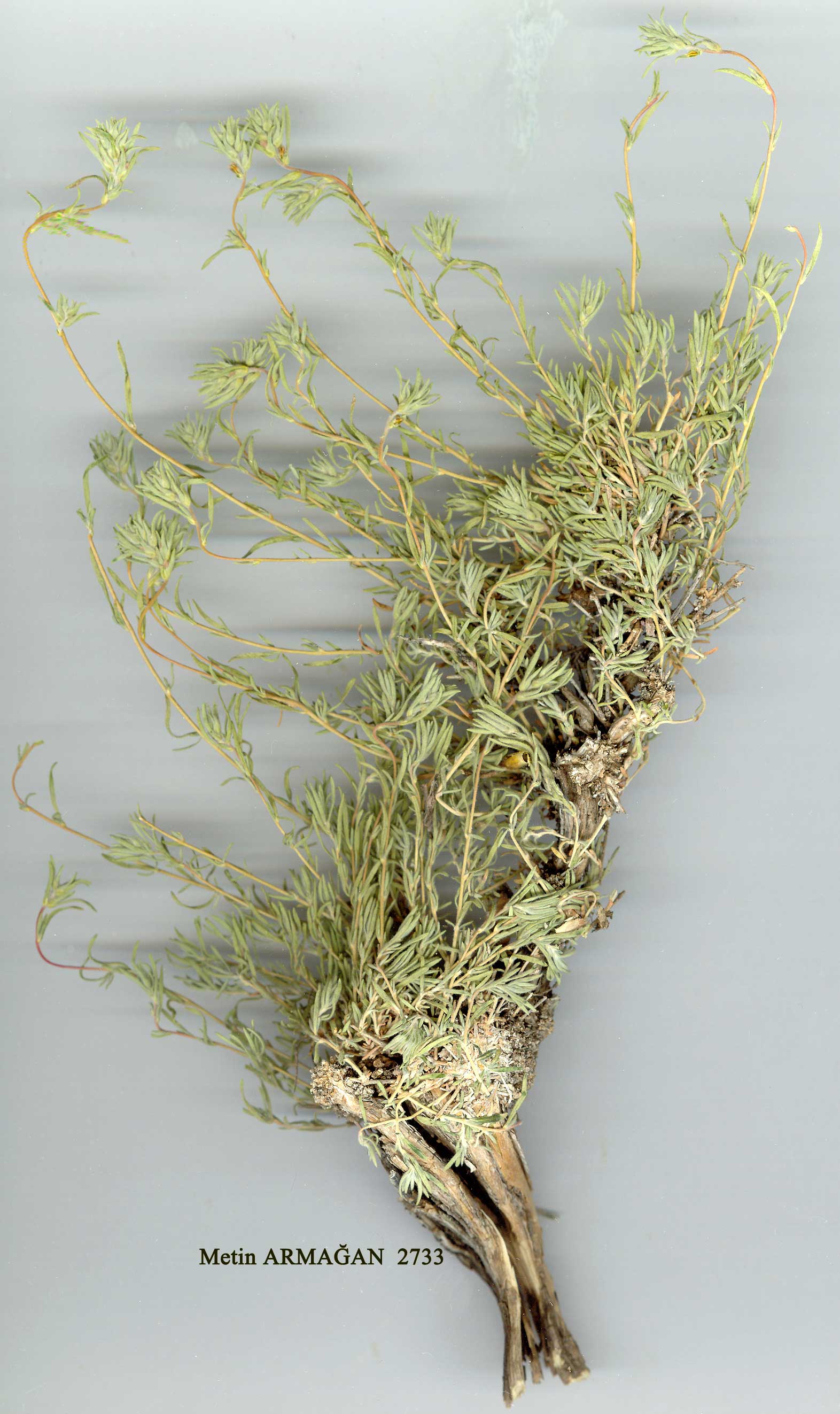 | S. canescens (Moq.) Boiss., Fl. Or. 4: 963 (1879). Syn: Noaea canescens Moq. in DC, Prodr. 13(2): 208 (1849); ? S. cana Koch in Linnaea 22: 190 (1849). Figure 9, p. 317. n Low, very woody cushion plant. Stem shortly, crisply hairy and with longer hairs. Leaves 10-15 mm x 0.1 mm, linear, circular, somewhat broadened, long-hairy. Bracts and bracteoles strongly broadened at the base, subulate above, longer than the perianth, adpressed-hairy. Perianth segments 4-5 mm, elongate-ovate, membranous, at last hardened, hairy above the wing, the apices forming a cone. Style robust, 0.75 mm; stigmas 1.5 mm, hand-like. Anthers linear, 1.5 mm, the halves free almost to the apex, the appendage of the connective 1 mm, narrowly triangular, warty-papillose. Seed erect. Fl. 5-7. Rocks, ridges, stony slopes, 900-2500 m. Type: Kurdistan, Kotschy 346. A8 Gümüşane: 20 miles E of Gümüşane, 2100 m, Furse 4102! B4 Niğde: SE side of Tuz G., Wagenitz 313! B7 Erzincan: Sipikor Da., nr. Siarte, Sint. 1890: 3223! B8 Bingöl: 85 km WSW of Erzurum, Rech. 15120! B9 Van: Erek Da., D. 22927! C9 Hakkari: Cilo Da. between Cilo Y. and Diz De., D. 24247! Syrian Desert, Iran. Ir.-Tur. element. Species wrongly or doubtfully recorded |