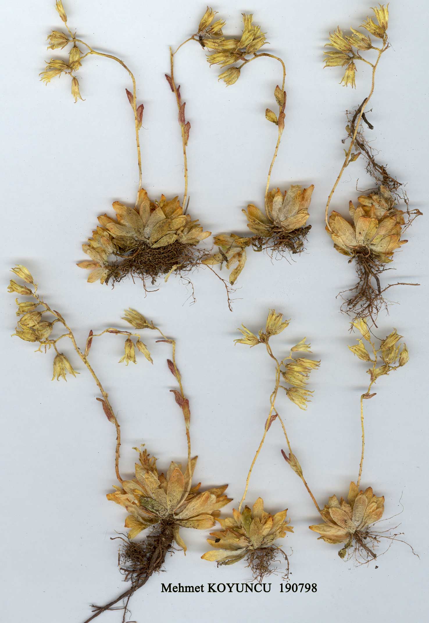 | R. aizoon (Fenzl) Berger in Engler & Prantl, Natürl. Pflanzenfam. 18a: 466 (193O).Syn: Umbilicus aizoonFenzl, Pug. 15(1842); U. pallidas Schott & Kotschy in Öst. Bot. Wochenbl. 7:229 (1857)! Ic: Fl. Armenii 3: t. 107 (1958) as R. chrysantha. Map 41, p. 217.