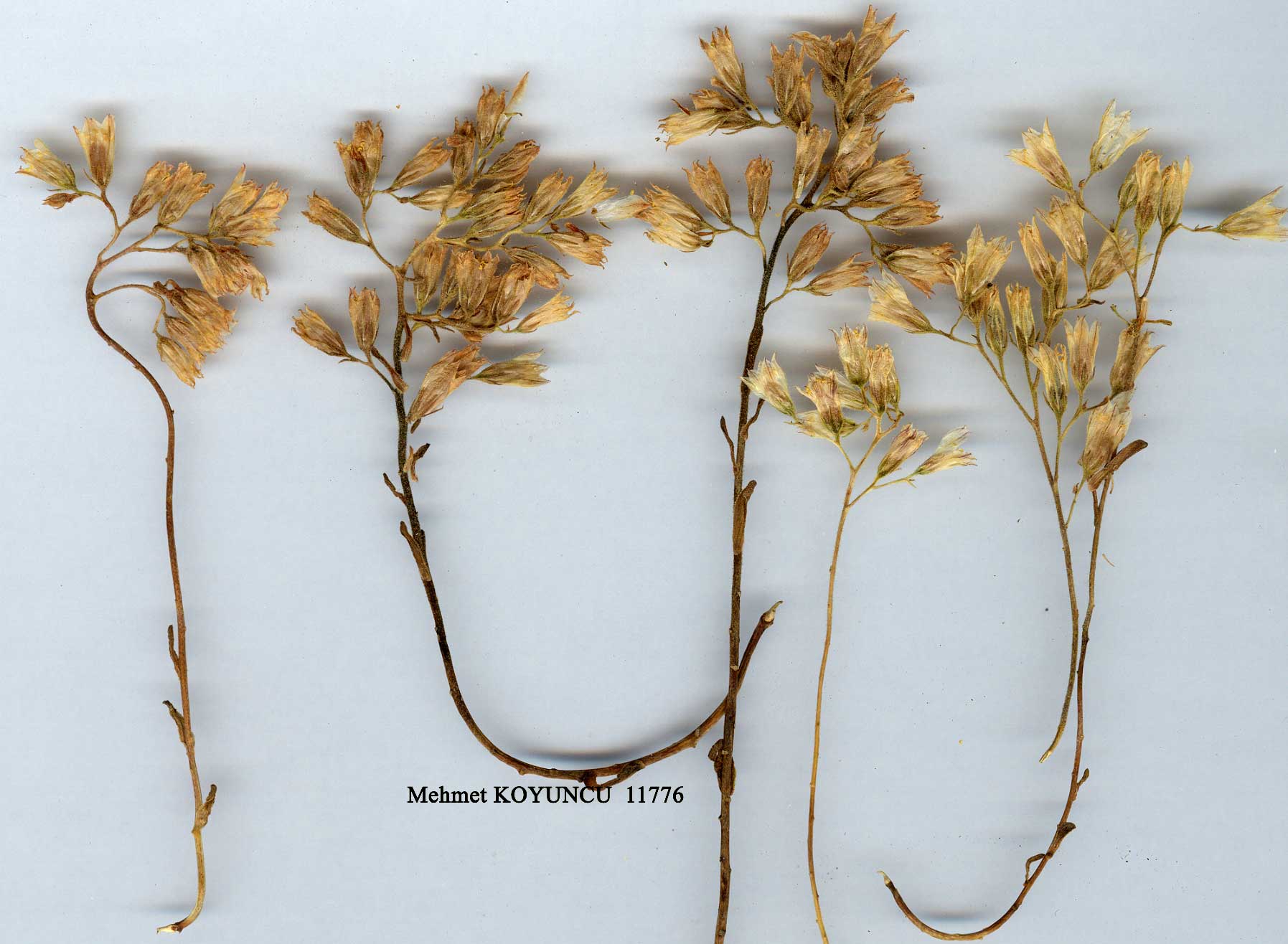 | R. radiciflora Boriss. in Fl. URSS 9:120 (1939). Rosettes 1-10 cm, with a distinct resting phase; caudex present; scapes 6-22 cm, lateral, flowering rosettes persistent. Leaves glabrous or glandular-pubescent with a cartilaginous-erose margin; those of the resting rosettes ovate-oblong, 10-20 mm, the outer often chartaceous, 'waisted' above, with an expanded tip, erecto-patent; those of the fertile rosettes narrowly spathulate, green or glaucous, often elongating considerably (up to 100 mm) as the inflorescence develops, spreading. Inflorescence 6-50-flowered, a raceme, cymose panicle or dichasial cyme, densely glandular-pubescent almost to the base of the scape or totally glabrous. Flower white to deep pink; pedicels 1-5 mm, those of the lowest flowers in the inflorescence or cyme the longest; calyx 4-6 mm; corolla campanu-late, 7-11 mm; anthers dark; scales quadrate, erect. Follicles lanceolate, 5-7 mm, shortly glandular to glabrous; styles 08-2.5 mm; seeds narrowly elliptic and attenuate, striate. Fl. 6-9. Shady limestone and igneous rocks, 900-3000 m. 1. Inflorescence and leaves glabrous subsp. glabra 1. Inflorescence and leaves glandular-pubescent 2. Flowers 6.5-8 mm, pink or white flushed with pink; scapes 6-10 cm; leaves up to 2 cm subsp. radiciflora 2. Flowers 8.5-11 mm, white; scapes (10-)15-25 cm; leaves up to 10 cm subsp. kurdica subsp. kurdica (Bornm.) Chamb. & Muirhead. comb, et stat. nov. Syn: Cotyledon libanotica Lab. var. kurdica Bornm. in Beih. Bot. Ccntr. 58B:272 (1938). Type: [N. Iraq] Kuh-i-Sefin beIm Dorfe Schaklawa, 1050 m, 20 vi 1893, Borrunüller 1217 (iso. K!). E. Anatolia. B9 Ağri: 5-10 km from Hamur to Tutak, 1650 m, D. 44109! Van: 8 km from Van to Erçek, 2100 m, D. 44406a! C9 Mardin: Hessana, S. foot of Cudi Da., 900 m, D. 42775! Hakkari: Çukurca, 1300 m, 22 v 1966, Eiseltl Elkiyayla Da., above Marunis to Beytişebap pass, 2550 m, D. 45347b! N. Iraq. Ir.-Tur. element. The gathering from Van cited above (D. 44406) is part of a population also containing subsp. radiciflora; some intergradation appears to be occurring in this population. |