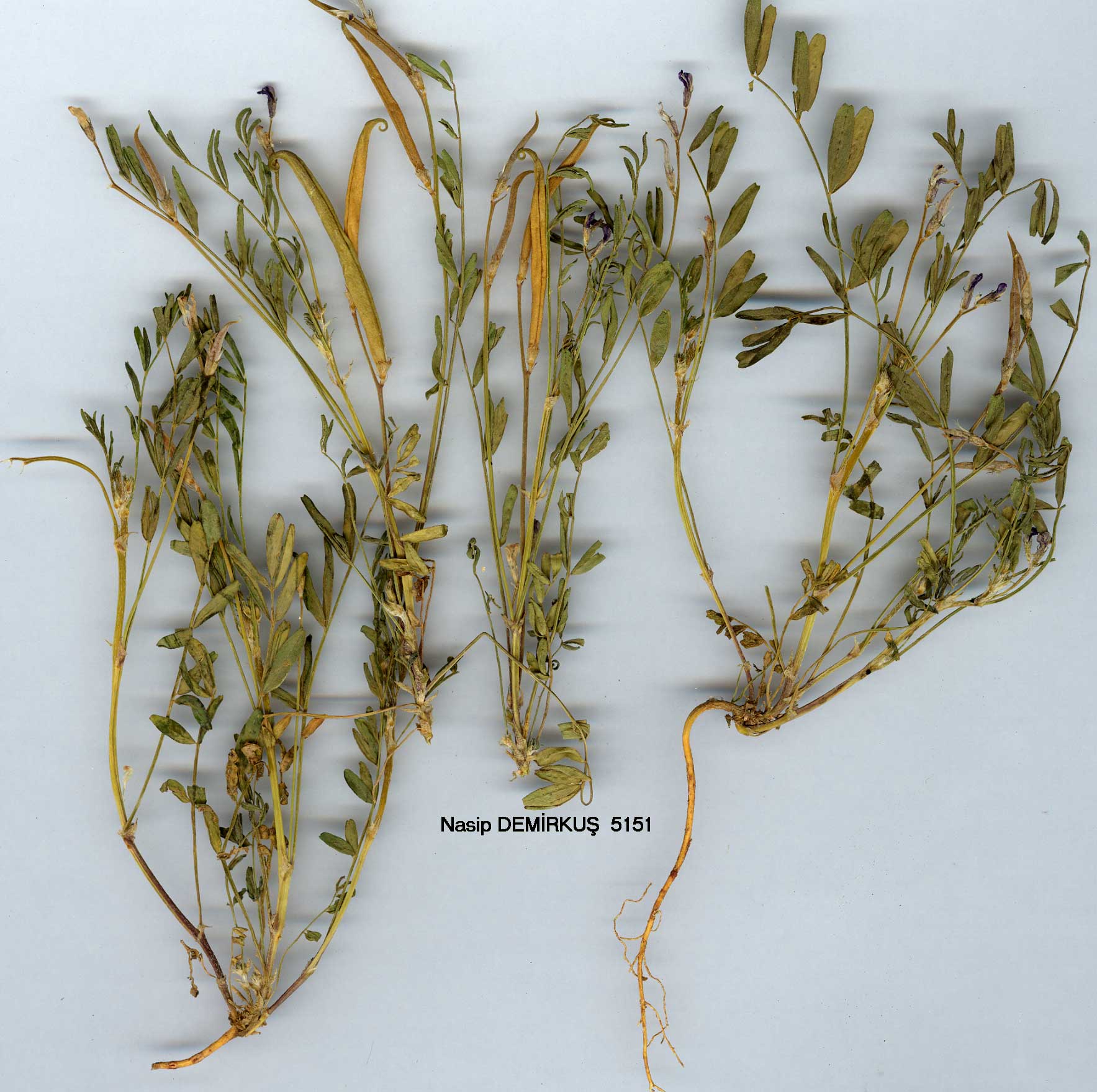 | A. campylorrhynchus Fisch. & Mey. in Ind. Sem. Hort. Petrop. 1:23 (1835). Ic: Fl. URSS 12: t. 22 f. 2 (1946). Figure 1, p. 91. Erect or decumbent annual, with adpressed-hairy stems up to 20 cm. Leaves 3-6 cm; leaflets 6-10 mm, linear to narrowly obovate, retuse, glabrous above, sparsely adpressed simple-hairy below, 5-7-paired; stipules 2-4 mm, triangular-lanceolate. Flowers in 1-4-flowered spikes. Bracts 0.5-1 mm, lanceolate. Calyx 3-4 mm, tubular, black and white adpressed simple-hairy; teeth c. 1 mm. Corolla violet; standard 6-9 mm. Legumes 30-45 x c. 3 mm, linear, straight, smooth, minutely white adpressed-hairy; beak curved at end into a hook. Fl. 6. Cultivated fields, 800-1300 m. Type: [N- Iran] In provincia Aderbeidschan Persiae borealis, Szovits ? C. & E. Anatolia. A4 Çankiri: Çakmakli De., nr. Çankiri, 800 m, Bornm. 1929: 14074! B7 Erzincan: Pülümür to Mutu, Karamanoğlu 66-4! C5 Niğde: 15 km NE of Niğde, 11 vi 1937 Reese! Kamechly-Tchai (Kamişli Çay), nr. Bereketli, 1300m, Bal. 934! N. & W. Iran, C. Asia. Ir.-Tur. element. Sect. Ankylotus Bunge. Caulescent annuals. Leaves imparipinnate; leaflets with both surfaces simple-hairy (in Turkey); stipules free. Inflorescence a raceme or spike. Flowers ebracteolate. Calyx not inflated, black and white simple-hairy. Standard glabrous with a terminal prolongation. Legume much exceeding calyx, linear, bilocular. many-seeded. Very similar to Sect. Harpilobus, differing mainly in the form of its standard. |