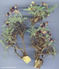 | A. micracme Boiss. & Noë in Boiss., Diagn. ser. 2(5): 87 (1856). Dwarf cushion-forming shrub with short stems. Leaves up to 3 cm; rachis spiny; leaflets obovate, retuse, both surfaces densely simple-long-pilose, 7-9-paired; stipules 3-5 mm, triangular, membranous, united at base. Flowers sub-pedicellate in a dense 3-6-flowered raceme. Bracts 3-4 mm, lanceolate. Bracteoles 1-1•5 mm, lanceolate. Calyx 12-14 mm, tubular at first, becoming inflated, densely long simple-white-pilose; teeth 2-3 mm. Corolla pinkish; standard 18-21 mm, lamina oblong-retuse, without basal auricles. Legumes very shortly stipitate, ovoid-globose, subcompressed, hairy. Fl. 6. Syntypes: [Soviet Armenia/Turkey A9 Kars] inter Erivan et Kars, Rauwolf; [Turkey B9 Van] in subalpinis prope Van Armeniae, Noë 173 (G!). Iran, Soviet Armenia. |