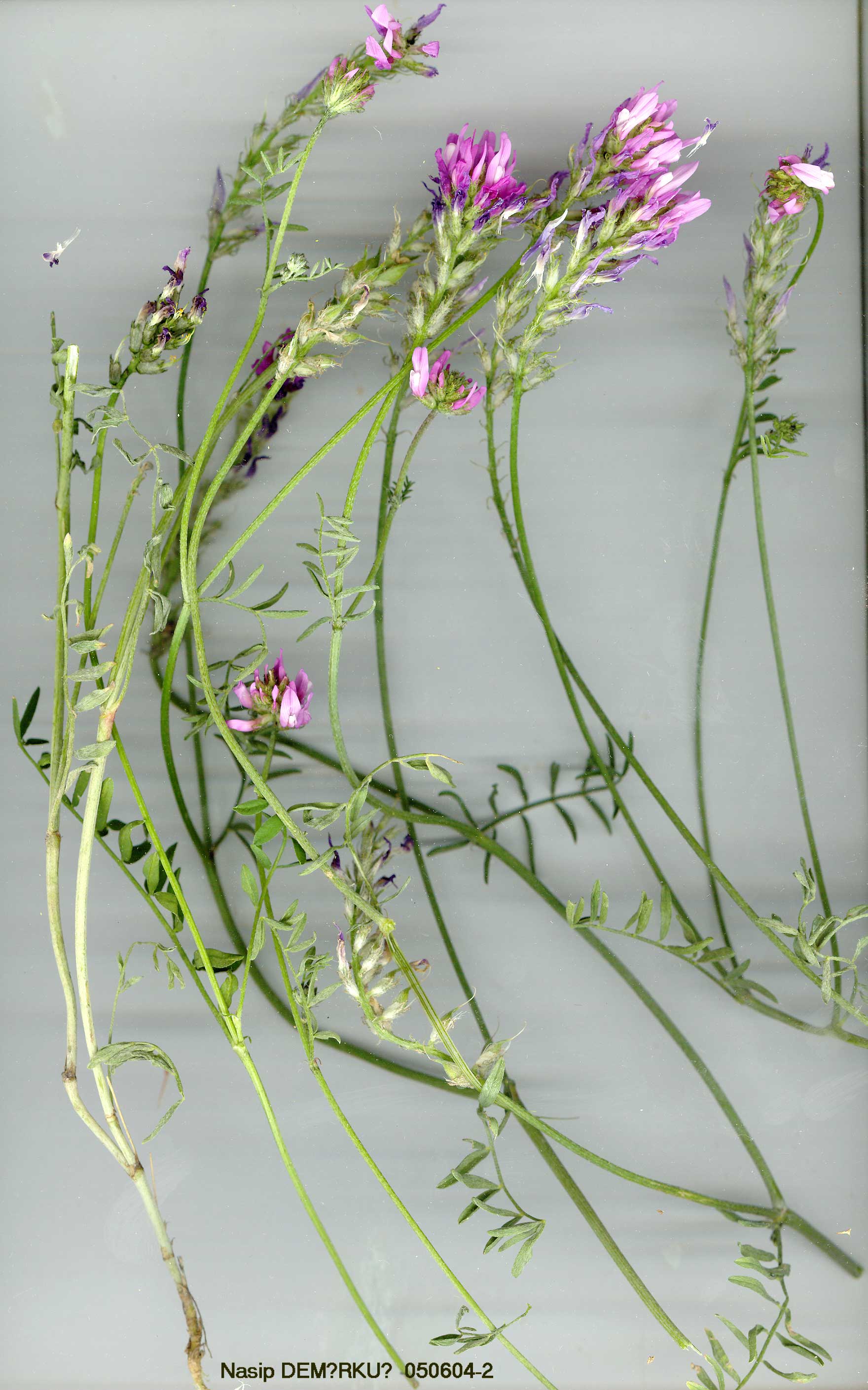 | A. perrarus Boriss. in Not. Syst. (Leningrad) 10:48 (1947). Erect or ascending, perennial herbs, 25-50 cm, with branched woody caudices; stems 25-50 cm. Leaves 5-8 cm; leaflets 4-10 mm, narrowly elliptic, bifurcate-sericeous, 6-14-paired; stipules 2-3 mm, ovate-lanceolate, free. Peduncles 3.5-8.5 cm. Inflorescence 2-2.5 cm diam., a dense, globose, 18-25-flowered raceme, much elongating in fruit. Bracts c. 2 mm, lanceolate. Calyx 8-11 mm, campanu-late, shortly black and white simple-setulose; teeth 3-4 mm, linear. Corolla lilac or violet; standard 16-21 mm, glabrous. Legume 11-12 xc. 3 mm, oblong-lanceolate, white-hispid, erect; beak c. 3 mm, curved. Fl. 6. Hillsides, c. 2300 m. Type: [Soviet Armenia] in viciniis urbis Erevan, prope pagum Kanahir in decliviis lapidosis et argillosis, 18 vi 1936, W. Tranzshel (holo. LE, photo!). E. Anatolia, B10 Van: 3-4 km NE of Başkale, 2300 m, D. 44514! Soviet Armenia. The Turkish specimen cited above agrees well with material determined by Mandenova as A. perrarus. It is, however, less robust generally than the type, and does not have any fruit. A specimen from B9 Bitlis (Van G.. 24 km W of Erciş, Cheese & Watson 1346!) may also belong to this species, but differs in apparently having young flowers that are pale lilac, becoming rosy purple on maturity. Whatever the status of these two plants, A. perrarus should occur in Turkey, especially in or near the Aras Valley, since it grows just over the border in Soviet Armenia. |
