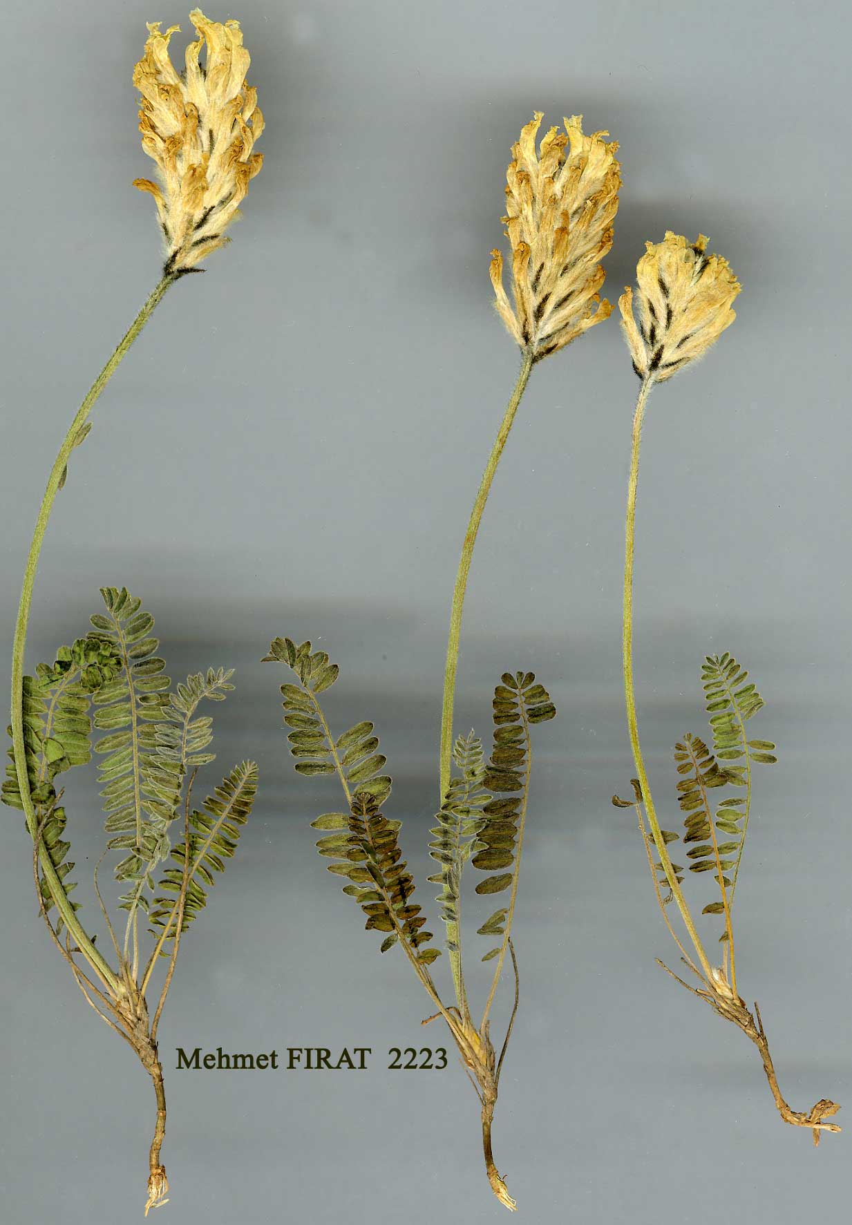 | A. tauricolus Boiss., Diagn. ser. 2(5):86 (1856). Figure 1, p. 91. Prostrate subcauiescent to caulescent perennial with a branched woody caudex; stems to c. 2 cm. Leaves 4-5 cm; leaflets 8-10 mm. elliptic, apex acute, ±spreading, simple-subsericeous, 10-l8-paired; stipules 7-10 mm, triangular-lanceolate, united for half their length. Peduncles 5-8 cm, slender. Inflorescence an oblong, 10-20-flowered spike which elongates in fruit. Bracts 5-7(-9) mm, lanceolate. Calyx 9-12 mm, tubular, inflating or splitting in fruit, shortly simpie-villous with black and white hairs; teeth 3-4 mm, subulate. Corolla cream with purple centre, or yellowish purple; standard 20-25 mm, not ligulately attenuate. Legume 11-13 mm, ovoid, densely villous with long white hairs; beak curved, 2-3 mm. Fl. 5-8. Limestone slopes, screes, etc., 1370-3350 m. Type: [Turkey C5 Niğde] in regione alpina Tauri Orientalis supra Bulgar-maaden, Balansa (iso. G! K!). S., C. & E. Anatolia. B5 Adana: Tschoh Da. nr. Gürümze, 1370 m, Kotschy 82! Kayseri: Bakir Da., above Kisge, 2600 m, D. 19339! B6 Yozgat: Akdağ-madeni to Büyük Nalbent Da., 2100 m, Coode & Jones 2053! Maraş: d. Göksun, Binboğa Da., Işik Da. above Karli Y., 2500 m, D. 20031! B7 Tunceli: Munzur Da. above Ovacik, 2800 m, D. 31225! B9 Van: Ispiriz Da., Güzeldere Tepe, 2900 m, Cheese & Watson 1543! C5 Adana: Bürücek, 1670 m, Balls 1283! Niğde: Bereketli Maden, 2200 m, Siehe 245! C10 Hakkari: Cilo Tepe, 3350 m, D. 24065! Endemic; Ir.-Tur. element. |