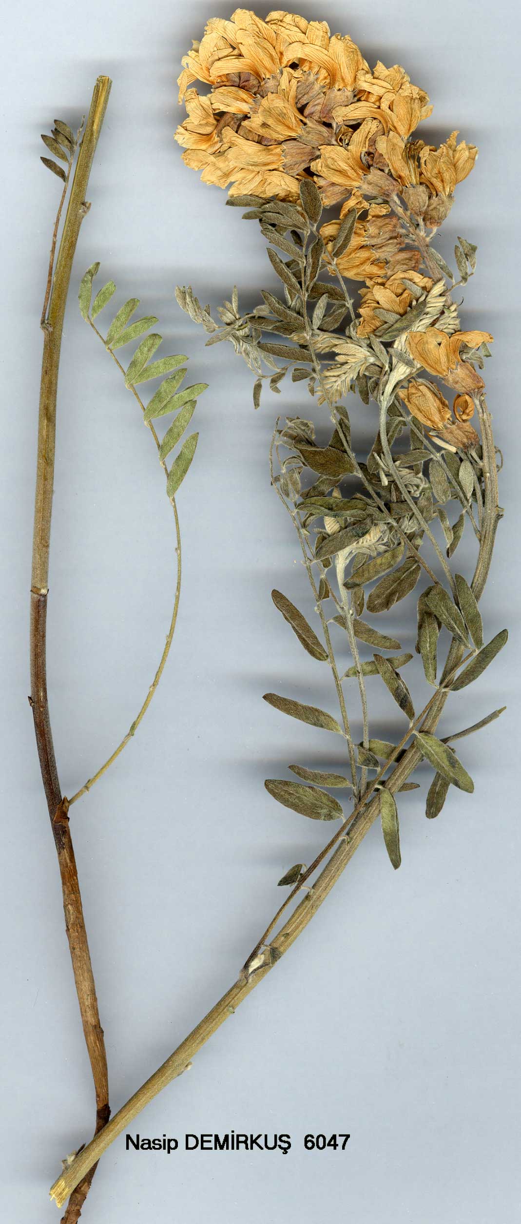 | S. alopecuroides L., Sp. PL 373 (1753). Map 4, p. 13. Pubescent, rhizomatous perennial, 50-100 cm. Leaflets 10-20 x 5-10 mm, oblong, 7-12-paired, densely hairy on both surfaces. Inflorescence 60-80-flowered, simple. Flowers cream, subsessile. Calyx 7-8 mm, the teeth c. 1 mm, densely pubescent. Corolla 18-20 mm, the standard recurved through 90°. Lomentum 7-10 cm, 3-10-seeded, strongly contracted between the seeds. Fl. 4-7. Edges of fields, banks, rarely on sand-dunes, s. 1.-1750 m. 1. Stem adpressed-hairy, the hairs pointing upwards var. alopecuroides - 1. Stem patulous-hairy, the hairs spreading or deflexed var. tomentosa var. tomentosa (Boiss.) Chamberlain, comb. nov. Syn: Goebelia alopecuroides (L.) Bunge var. tomentosa Boiss., FI. Or. 2:629 (1872). Several syntypes from Iraq, Iran. Afghanistan &. N.W. Pakistan. E. Anatolia. B6 Malatya: Darende to Kavak Aghatsch, B. Post! B9 Van: Gürpınar (Havasor), 1750 m, D. 44588! S.W. & E. Asia. The species (which in Turkey is centred in the Irano-Turanian region) has also been recorded for B5 (Kayseri: Erciyas Da., in Hayek, 1914) and A9 (Kars: Aras valley nr. Kağizman, Grossheim 5: map 179). Var. tomentosa largely replaces var. alopeciiroides in Iran and further east, but mixed populations do occur. This species somewhat resembles Astragalus lusitaniciis in facies. |